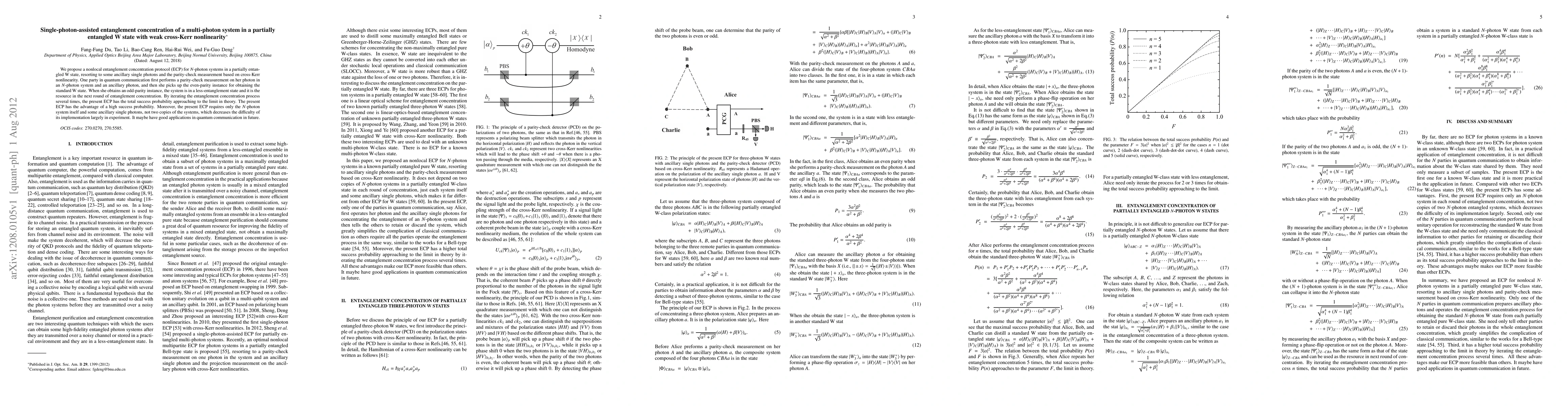 This paper proposes a nonlocal entanglement concentration protocol for $N$-photon systems in a partially entangled W state, utilizing single-photon assistance and cross-Kerr nonlinearity. The protocol iteratively enhances entanglement with high success probability, requiring only the original system and ancillary photons, simplifying experimental implementation.
