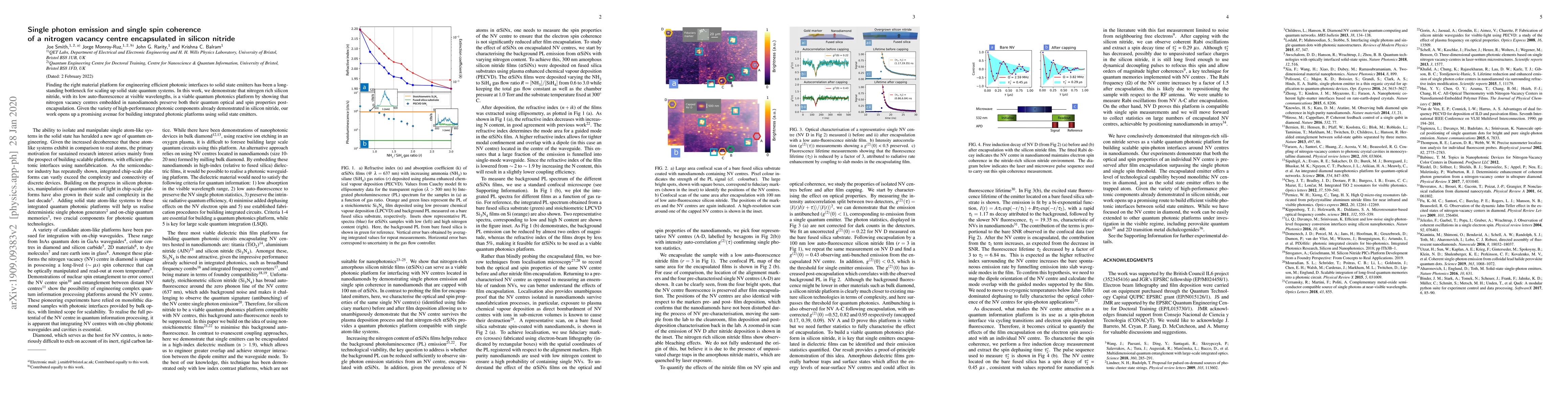Finding the right material platform for engineering efficient photonic interfaces to solid state emitters has been a long-standing bottleneck for scaling up solid state quantum systems. In this work, we demonstrate that nitrogen-rich silicon nitride, with its low background auto-fluorescence at visible wavelengths, is a viable quantum photonics platform by showing that nitrogen vacancy centres embedded in nanodiamonds preserve both their quantum optical and spin properties post-encapsulation. Given the variety of high-performance photonic components already demonstrated in silicon nitride, our work opens up a new avenue for building integrated photonic circuits using solid state emitters.