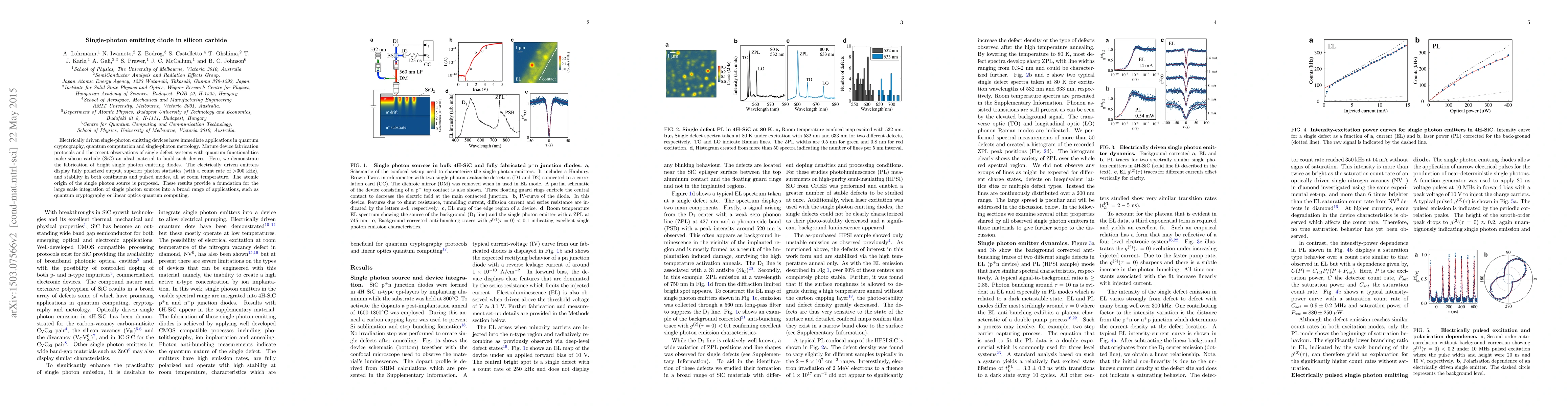 This paper demonstrates the fabrication of bright, electrically driven single-photon emitting diodes in silicon carbide, showcasing fully polarized output, superior photon statistics, and operational stability at room temperature, laying a foundation for integration into quantum technologies. The atomic origin of the single photon source is identified, supporting its use in quantum cryptography and quantum computation.