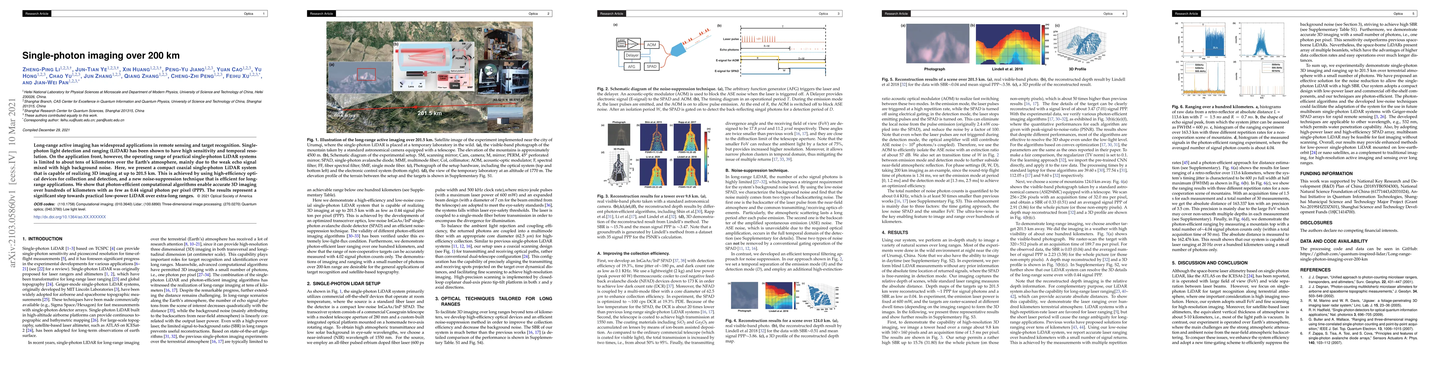 Long-range active imaging has widespread applications in remote sensing and target recognition. Single-photon light detection and ranging (lidar) has been shown to have high sensitivity and temporal resolution. On the application front, however, the operating range of practical single-photon lidar systems is limited to about tens of kilometers over the Earth's atmosphere, mainly due to the weak echo signal mixed with high background noise. Here, we present a compact coaxial single-photon lidar system capable of realizing 3D imaging at up to 201.5 km. It is achieved by using high-efficiency optical devices for collection and detection, and what we believe is a new noise-suppression technique that is efficient for long-range applications. We show that photon-efficient computational algorithms enable accurate 3D imaging over hundreds of kilometers with as few as 0.44 signal photons per pixel. The results represent a significant step toward practical, low-power lidar over extra-long ranges.