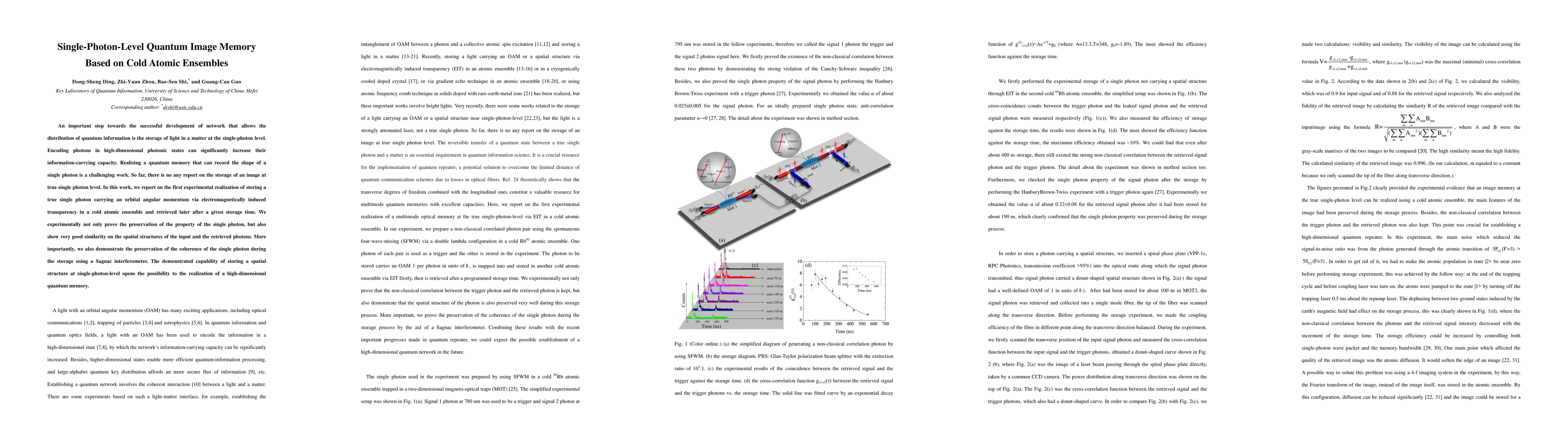 This paper presents the first experimental realization of a quantum memory capable of storing a true single photon carrying orbital angular momentum at the single-photon level using cold atomic ensembles. The study demonstrates the preservation of the photon's spatial structure and coherence during storage, paving the way for high-dimensional quantum memory applications.