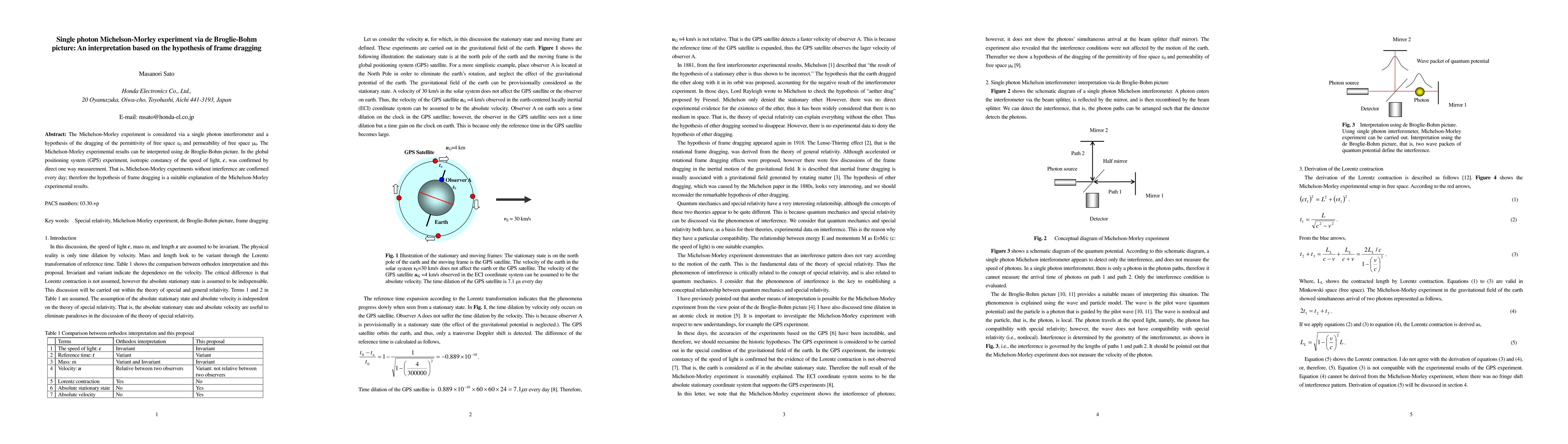 This paper explores the Michelson-Morley experiment using a single photon interferometer and the hypothesis of frame dragging, suggesting that the experiment's results can be interpreted through the de Broglie-Bohm picture. It argues that the GPS experiment confirms the constancy of light speed, reinforcing the frame dragging hypothesis as a valid explanation.