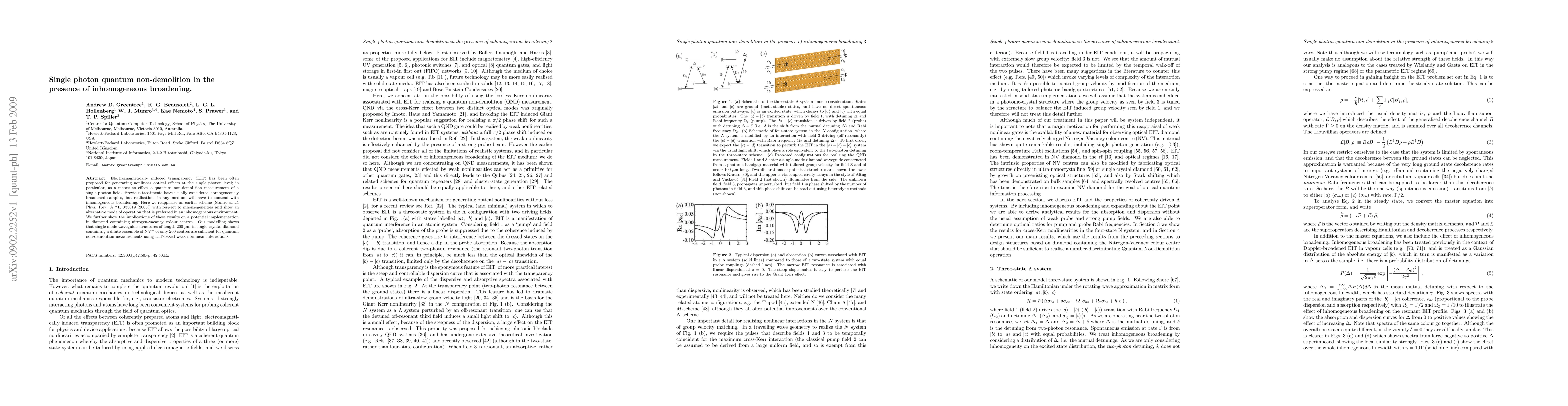 This paper revisits a quantum non-demolition measurement scheme using electromagnetically induced transparency (EIT) in the context of inhomogeneous broadening, demonstrating an alternative operational mode suited for such environments. It concludes that single-crystal diamond waveguides with a dilute ensemble of nitrogen-vacancy centres can effectively implement this scheme.
