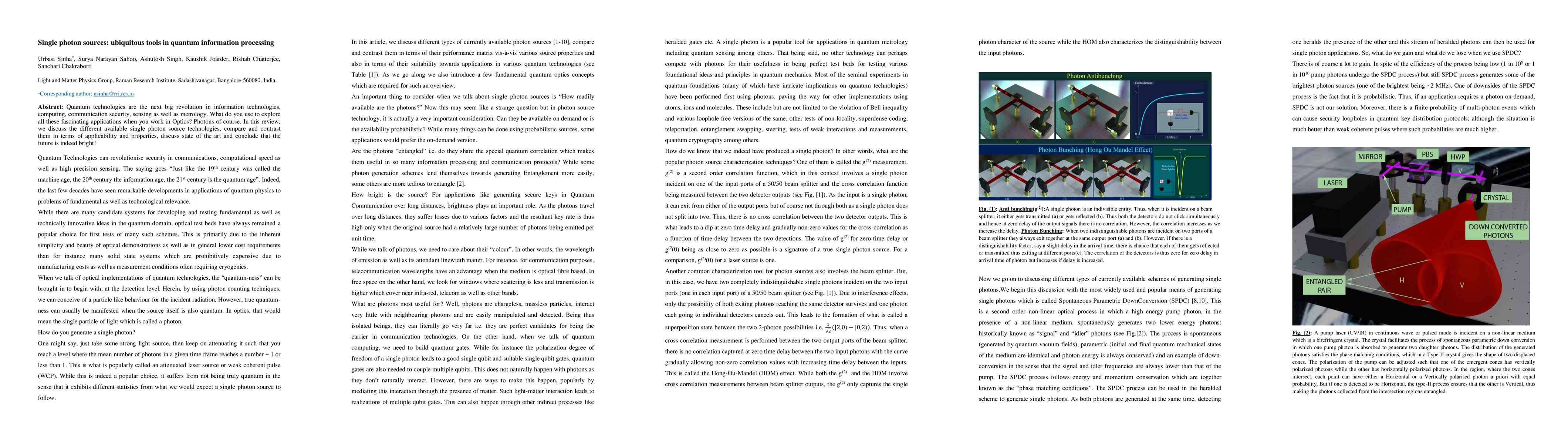 Quantum technologies are the next big revolution in information technologies, computing, communication security, sensing as well as metrology. What do you use to explore all these fascinating applications when you work in Optics? Photons of course. In this review, we discuss the different available single photon source technologies, compare and contrast them in terms of applicability and properties, discuss state of the art and conclude that the future is indeed bright!