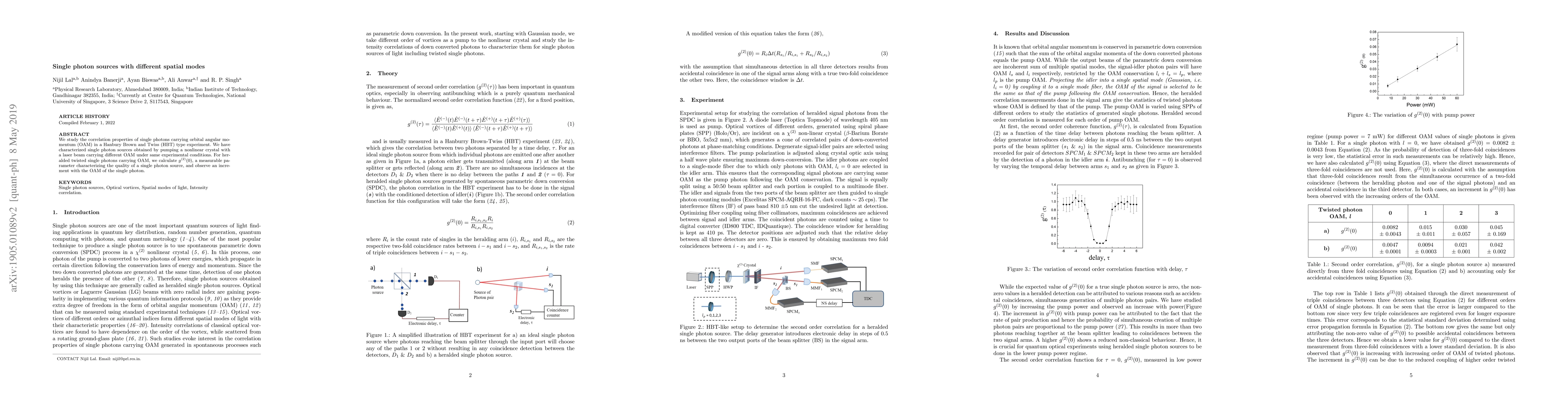 We study the correlation properties of single photons carrying orbital angular momentum (OAM) in a Hanbury Brown and Twiss (HBT) type experiment. We have characterized single photon sources obtained by pumping a nonlinear crystal with a laser beam carrying different OAM under same experimental conditions. For heralded twisted single photons carrying OAM, we calculate $g^{(2)}(0)$, a measurable parameter characterizing the quality of a single photon source, and observe an increment with the OAM of the single photon.