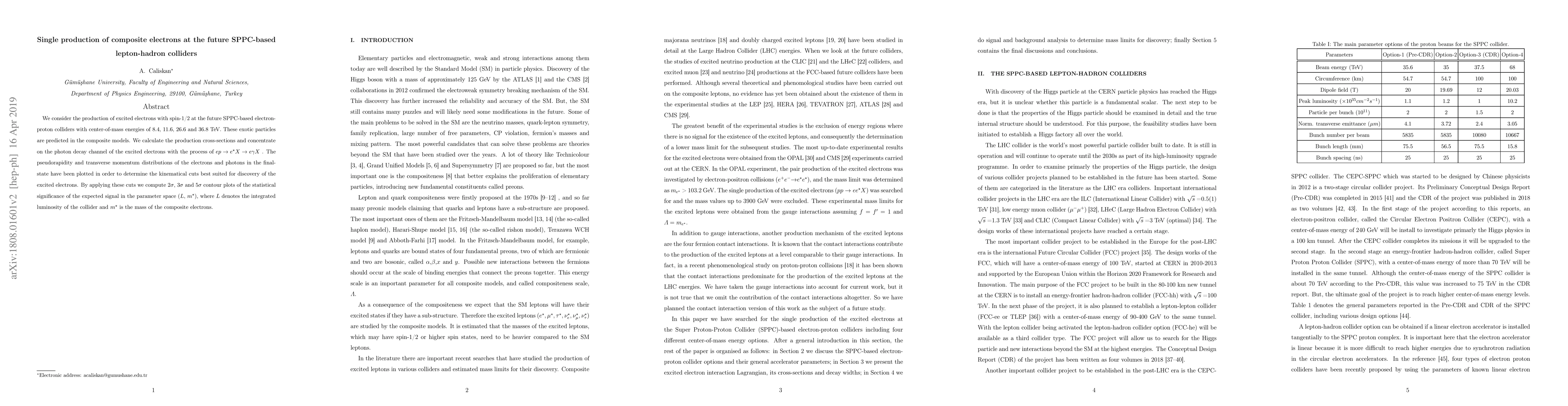 This paper investigates the single production of composite excited electrons at future SPPC-based electron-proton colliders, focusing on the photon decay channel. It calculates production cross-sections and determines optimal kinematical cuts for detecting these particles, providing statistical significance contours for various luminosity and mass scenarios.
