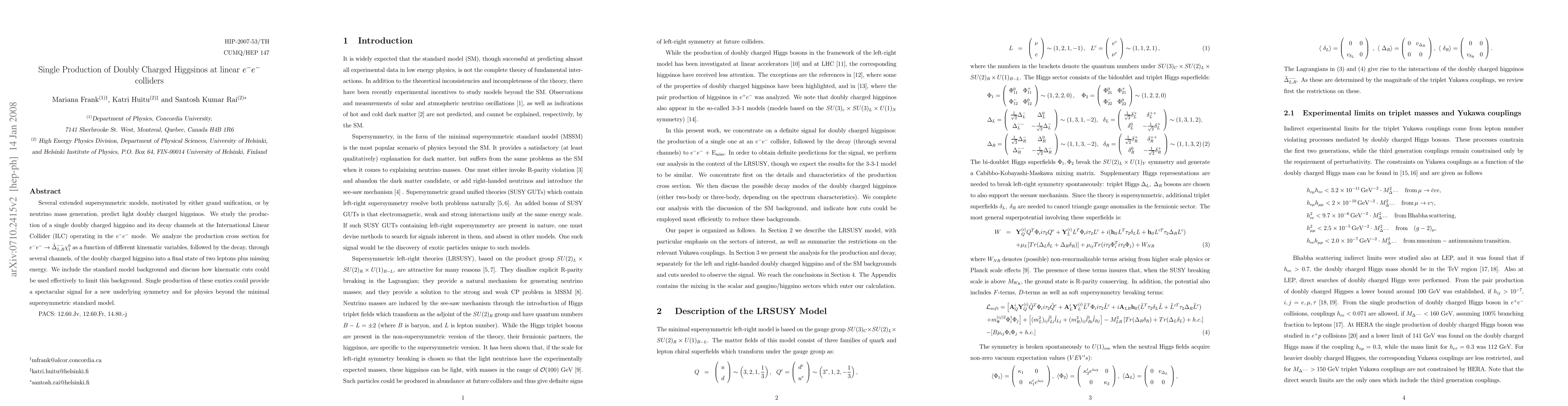 This paper investigates the production of light doubly charged higgsinos at the International Linear Collider (ILC) in electron-electron collision mode, analyzing their decay into two leptons and missing energy, and discusses strategies to distinguish these signals from standard model backgrounds. The study highlights the potential for these particles to reveal new physics beyond the minimal supersymmetric standard model.
