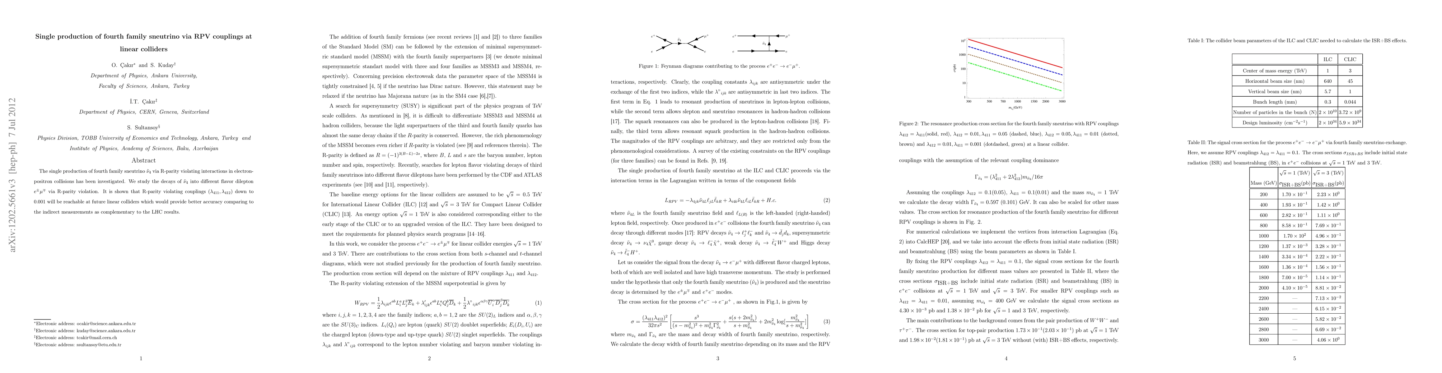 This paper investigates the single production of fourth family sneutrino $\tilde{\nu}_{4}$ via R-parity violating interactions at future linear colliders. It demonstrates that R-parity violating couplings $(\lambda_{411},\lambda_{412})$ as small as 0.001 can be probed, offering more precise measurements compared to indirect LHC results.