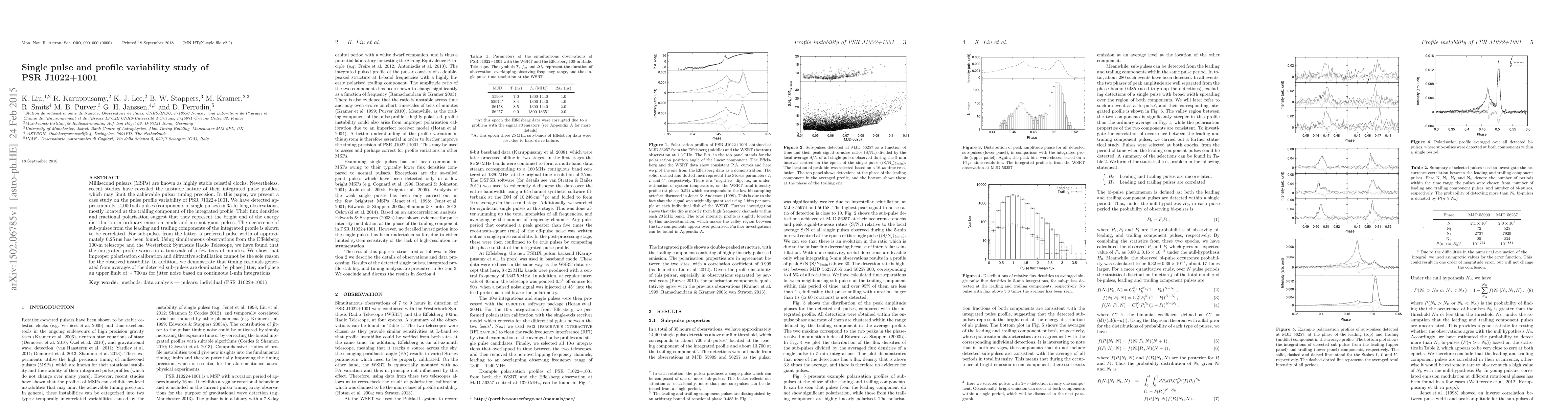Researchers studied PSR J1022+1001, finding it has unstable pulse profile variability with correlated sub-pulses from leading and trailing components, affecting timing precision. The study's findings suggest phase jitter is a significant contributor to the instability.