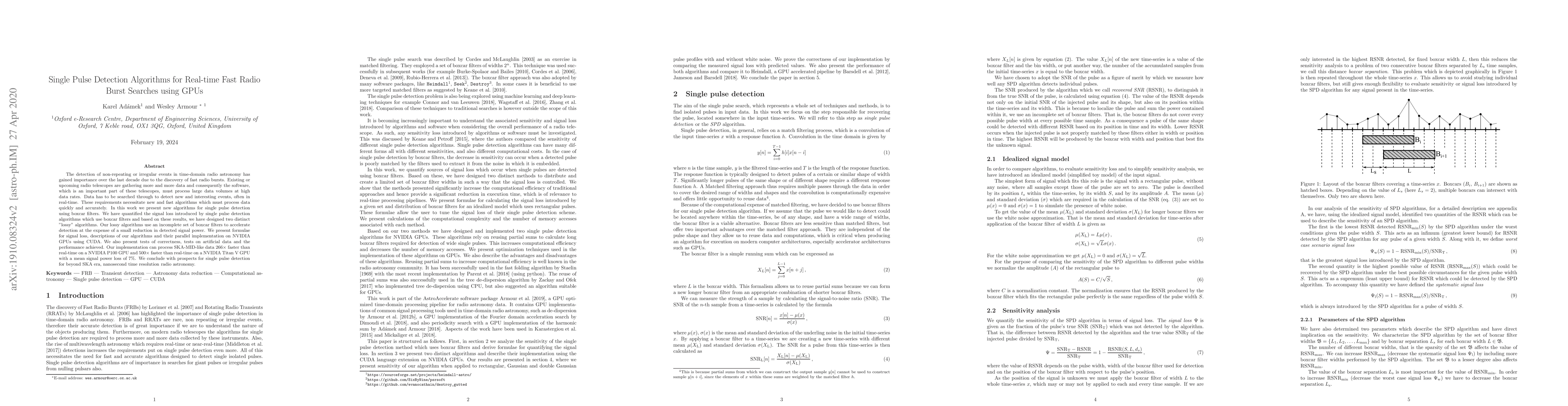 The detection of non-repeating or irregular events in time-domain radio astronomy has gained importance over the last decade due to the discovery of fast radio bursts. Existing or upcoming radio telescopes are gathering more and more data and consequently the software, which is an important part of these telescopes, must process large data volumes at high data rates. Data has to be searched through to detect new and interesting events, often in real-time. These requirements necessitate new and fast algorithms which must process data quickly and accurately. In this work we present new algorithms for single pulse detection using boxcar filters. We have quantified the signal loss introduced by single pulse detection algorithms which use boxcar filters and based on these results, we have designed two distinct "lossy" algorithms. Our lossy algorithms use an incomplete set of boxcar filters to accelerate detection at the expense of a small reduction in detected signal power. We present formulae for signal loss, descriptions of our algorithms and their parallel implementation on NVIDIA GPUs using CUDA. We also present tests of correctness, tests on artificial data and the performance achieved. Our implementation can process SKA-MID-like data 266$\times$ faster than real-time on a NVIDIA P100 GPU and 500x faster than real-time on a NVIDIA Titan V GPU with a mean signal power loss of 7%. We conclude with prospects for single pulse detection for beyond SKA era, nanosecond time resolution radio astronomy.