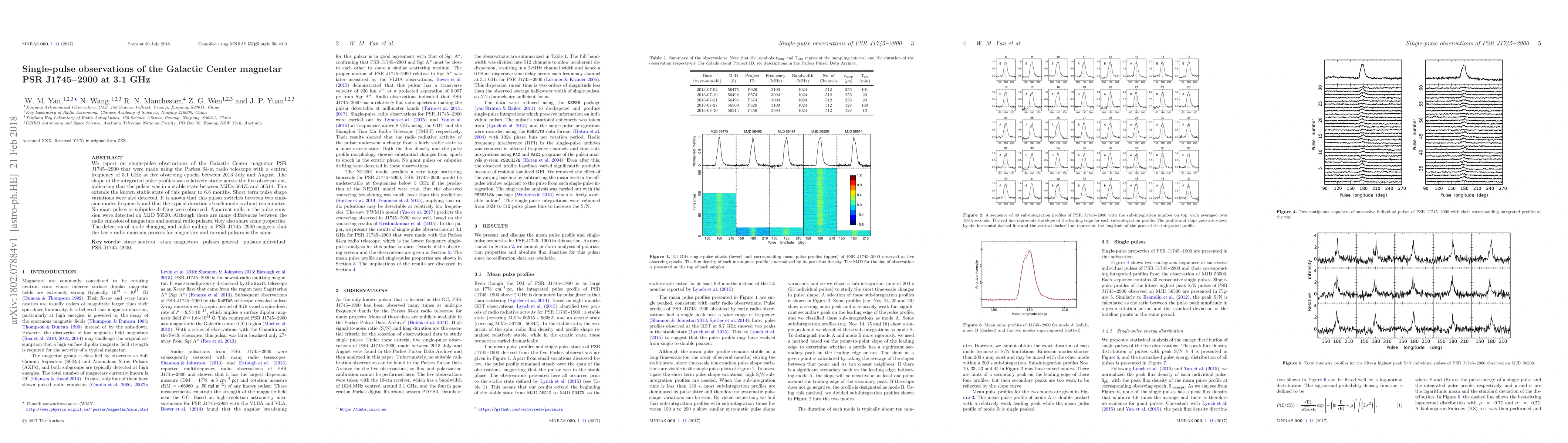 Researchers observed stable pulse profiles of magnetar PSR J1745$-$2900 at 3.1 GHz, detecting short-term variations and mode switching between two emission modes lasting about ten minutes.