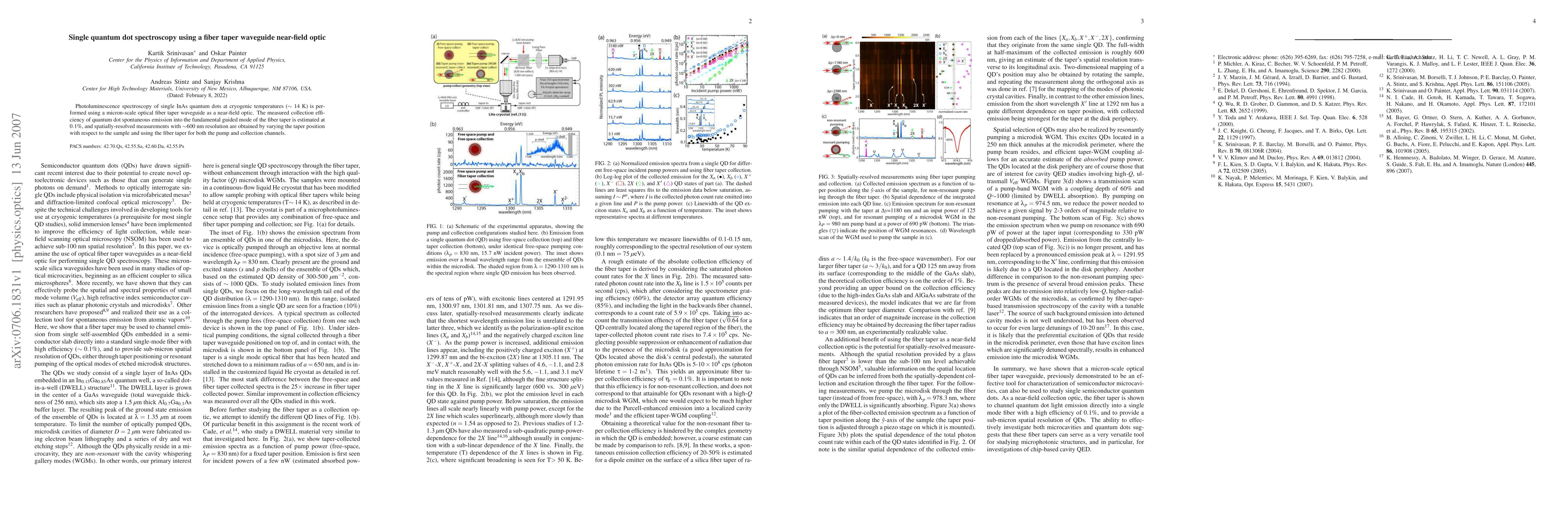 Summary: This study investigates single InAs quantum dot photoluminescence at cryogenic temperatures using a fiber taper waveguide as a near-field optic, achieving a 0.1% collection efficiency and spatially-resolved measurements with ~600 nm resolution.