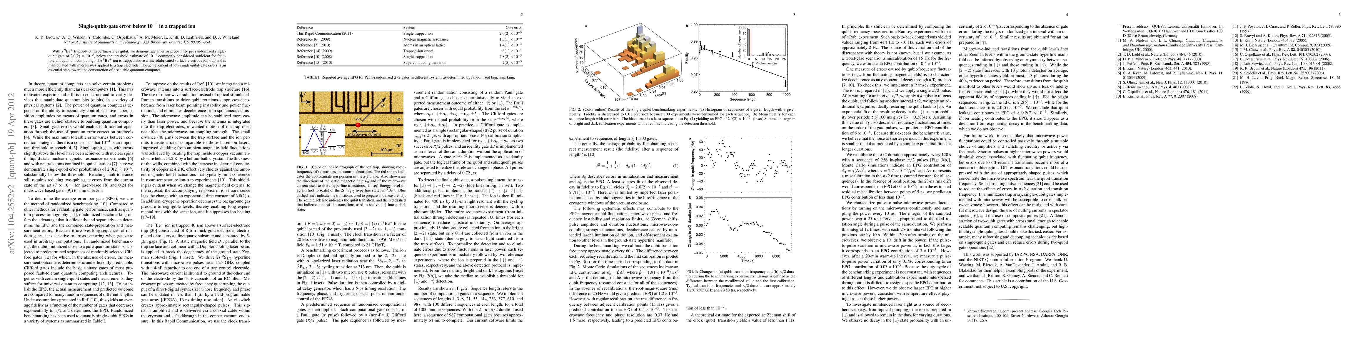 This paper demonstrates a single-qubit-gate error probability of 2.0(2) x 10^-5 using a 9Be+ trapped-ion qubit, surpassing the 10^-4 threshold for fault-tolerant quantum computing. The 9Be+ ion is manipulated with microwaves in a microfabricated ion trap, marking a significant step toward scalable quantum computing.