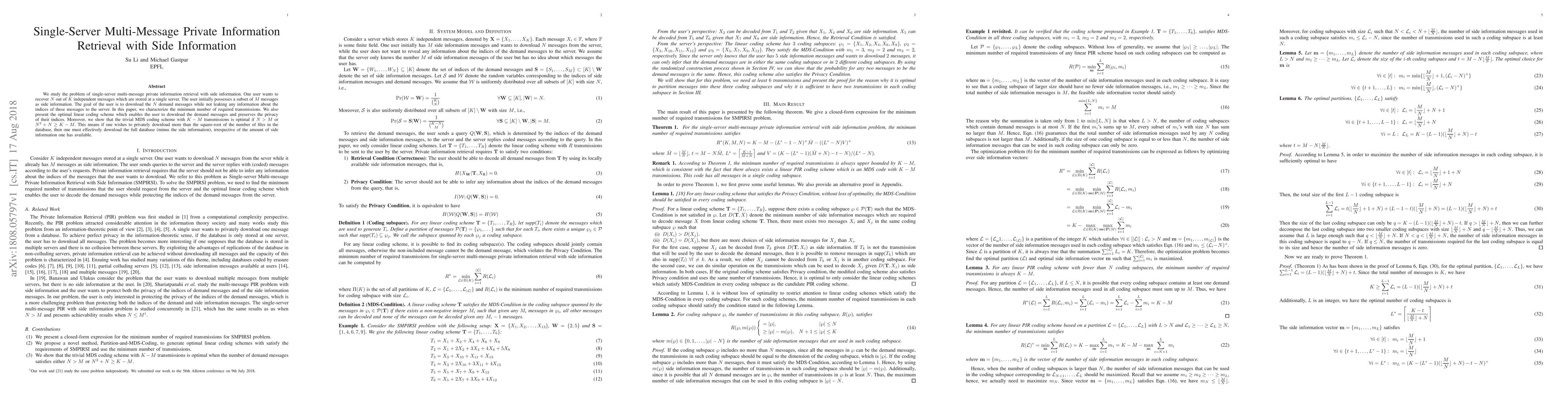 This paper investigates single-server multi-message private information retrieval with side information, determining the minimum number of transmissions required while ensuring privacy. It presents an optimal linear coding scheme and proves that the trivial MDS coding scheme is optimal for certain conditions, highlighting the trade-off between the number of messages to download and the privacy of the retrieval process.