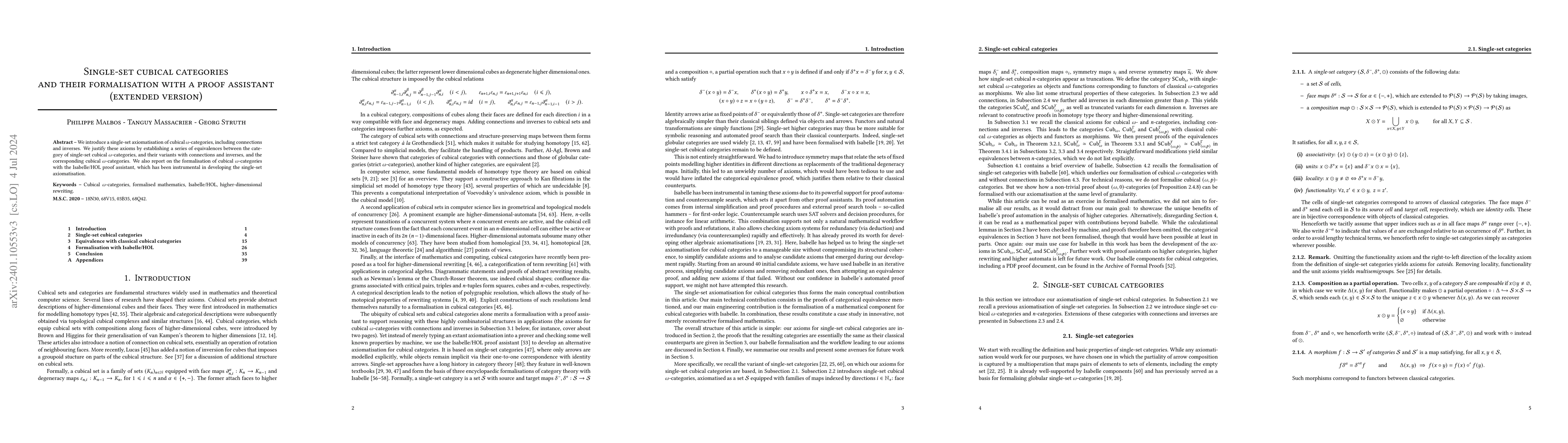 This paper proposes a single-set axiomatisation for cubical $\omega$-categories, complete with connections and inverses, and formalises these categories using the Isabelle/HOL proof assistant to validate the proposed axioms.