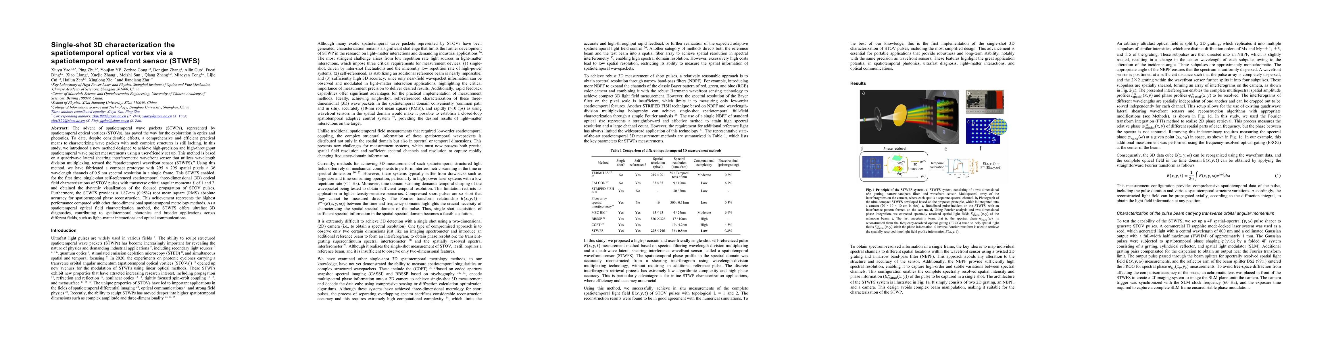 The research introduces a spatiotemporal wavefront sensor (STWFS) based on quadriwave lateral shearing interferometry and wavelength division multiplexing for characterizing spatiotemporal optical vortices (STOVs).