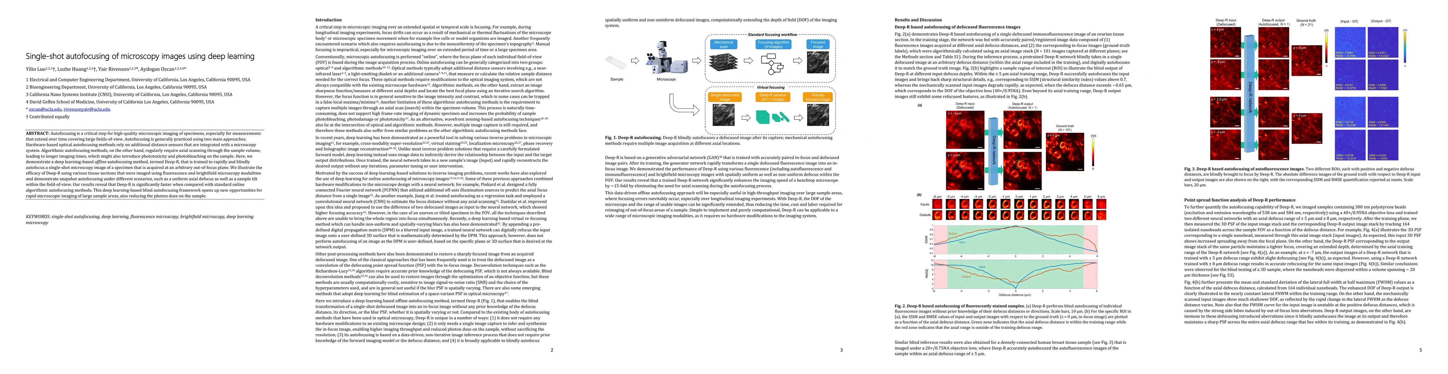 This paper introduces Deep-R, a deep learning method for rapid, offline autofocusing of microscopy images, significantly faster than traditional online methods. It demonstrates the efficacy of Deep-R across various microscopy modalities and defocus conditions, highlighting its potential for large-area, low-photon-dose imaging.