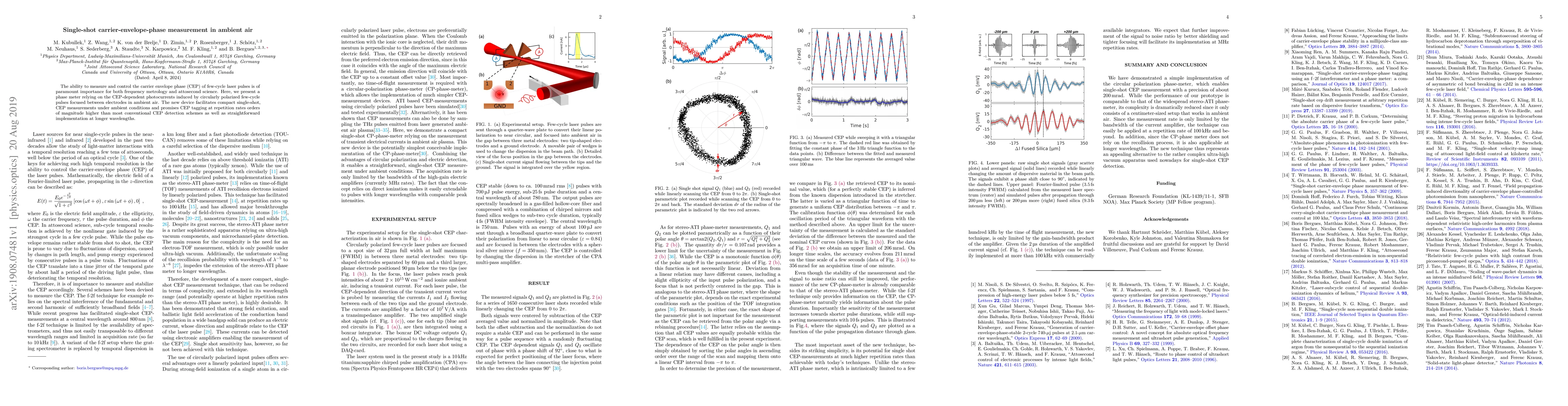 The ability to measure and control the carrier envelope phase (CEP) of few-cycle laser pulses is of paramount importance for both frequency metrology and attosecond science. Here, we present a phase meter relying on the CEP-dependent photocurrents induced by circularly polarized few-cycle pulses focused between electrodes in ambient air. The new device facilitates compact single-shot, CEP measurements under ambient conditions and promises CEP tagging at repetition rates orders of magnitude higher than most conventional CEP detection schemes as well as straightforward implementation at longer wavelengths.
