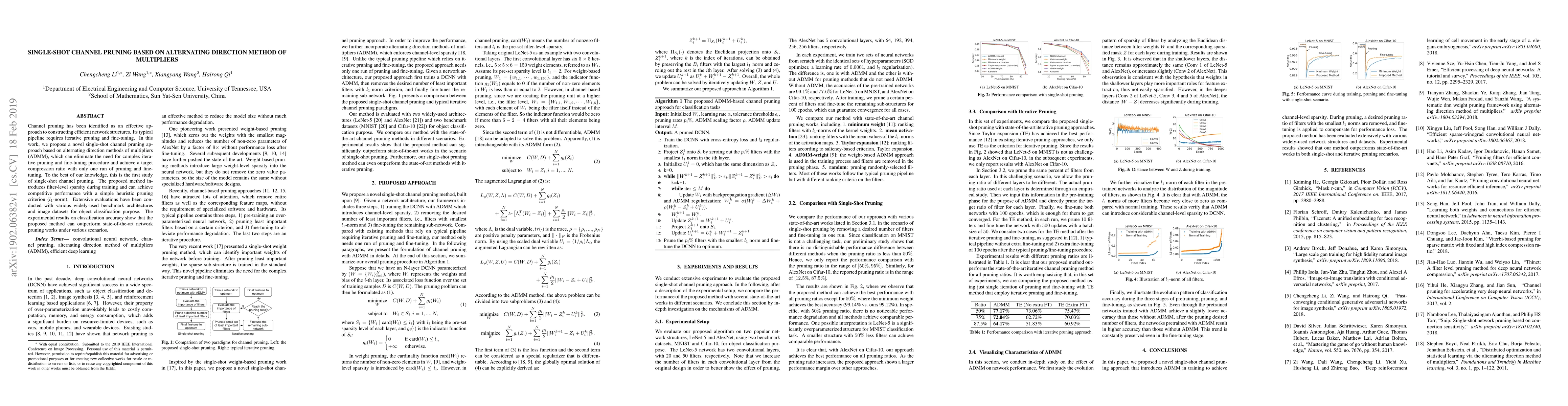 This paper proposes a novel single-shot channel pruning method based on the alternating direction method of multipliers (ADMM) to achieve efficient network compression without iterative pruning and fine-tuning. The method introduces filter-level sparsity and outperforms state-of-the-art techniques in terms of classification accuracy across various architectures and datasets.