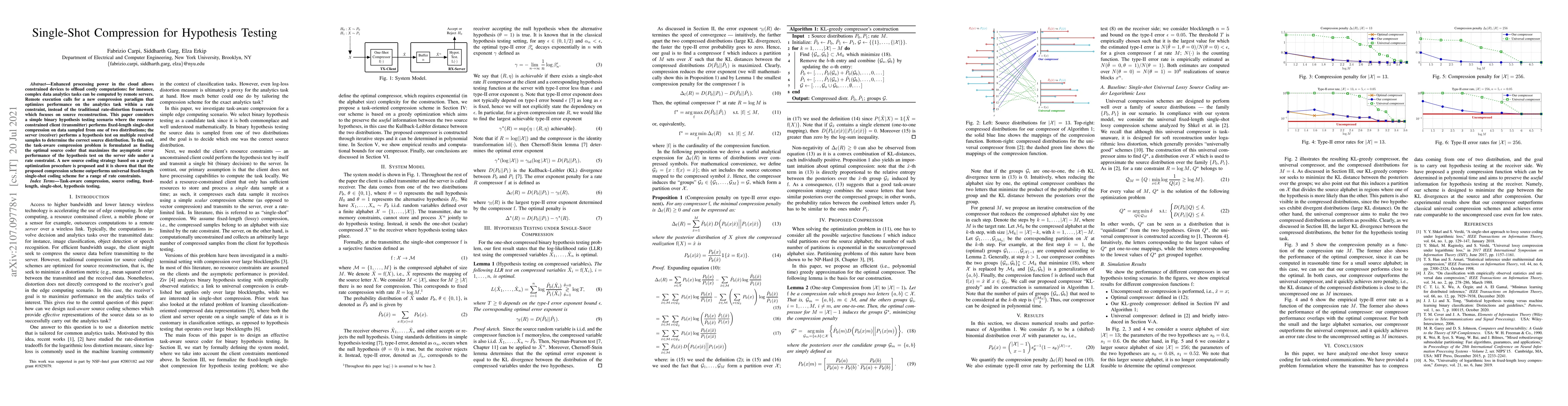 This paper proposes a new single-shot compression strategy for binary hypothesis testing in resource-constrained environments, optimizing performance under a rate constraint rather than traditional source reconstruction. The proposed greedy optimization-based source coding strategy outperforms universal coding schemes across various rate constraints.