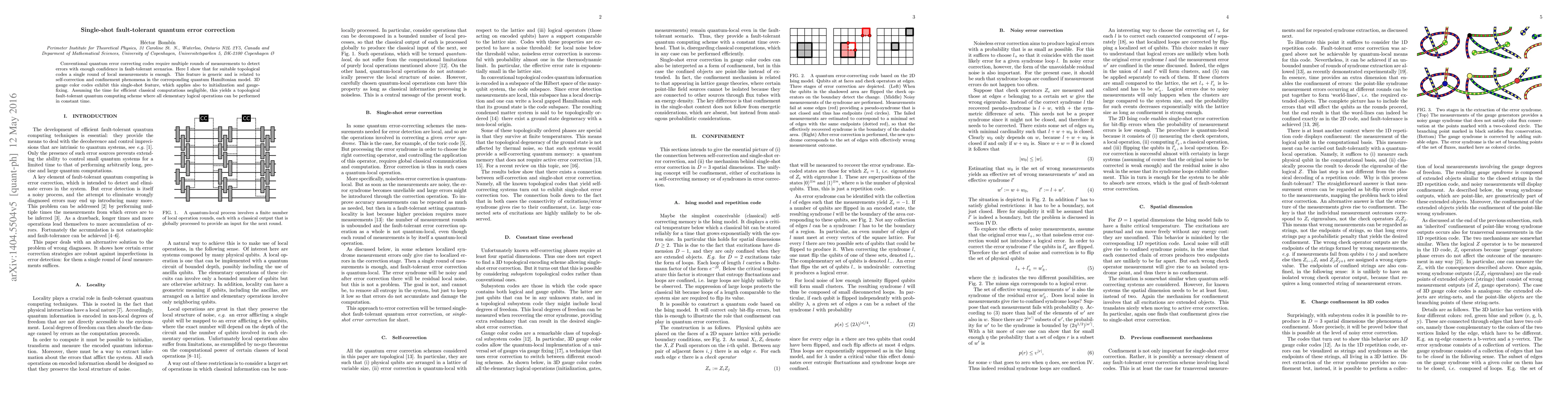 The research presents a novel quantum error correction method using topological codes that requires only a single round of local measurements, enabling efficient fault-tolerant quantum computing with constant time for logical operations. This self-correcting feature is inherent to 3D gauge color codes.