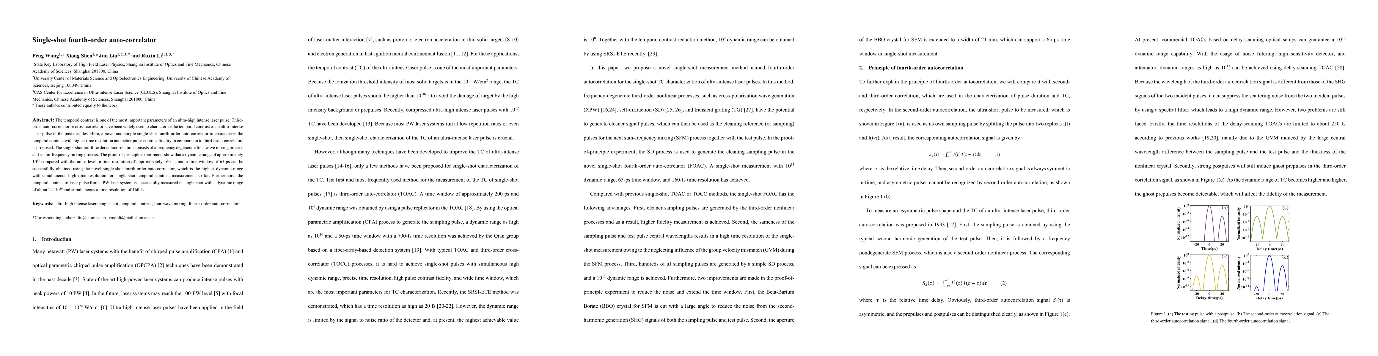 The temporal contrast is one of the most important parameters of an ultra-high intense laser pulse. Third-order auto-correlator or cross-correlator have been widely used to characterize the temporal contrast of an ultra-intense laser pulse in the past decades. Here, a novel and simple single-shot fourth-order auto-correlator to characterize the temporal contrast with higher time resolution and better pulse contrast fidelity in comparison to third-order correlators is proposed. The single-shot fourth-order autocorrelation consists of a frequency degenerate four-wave mixing process and a sum-frequency mixing process. The proof-of-principle experiments show that a dynamic range of approximately 10^11 compared with the noise level, a time resolution of approximately 160 fs, and a time window of 65 ps can be successfully obtained using the novel single-shot fourth-order auto-correlator, which is the highest dynamic range with simultaneous high time resolution for single-shot temporal contrast measurement so far. Furthermore, the temporal contrast of laser pulse from a PW laser system is successfully measured in single-shot with a dynamic range of about 2*10^10 and simultaneous a time resolution of 160 fs.