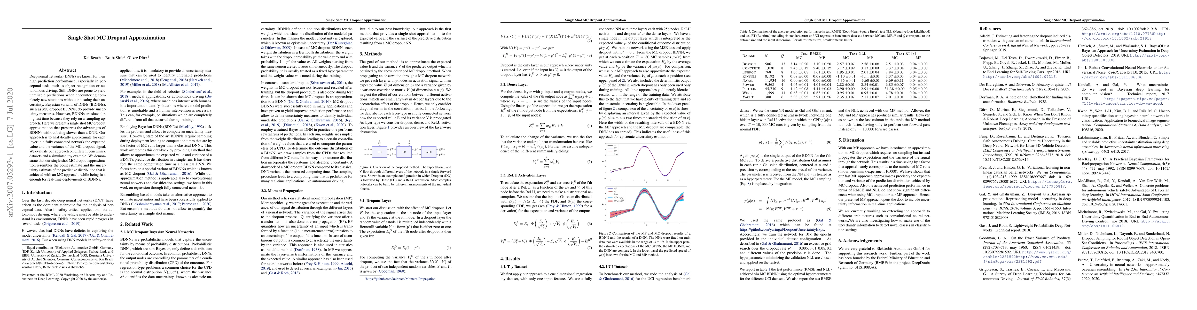 This paper proposes a single shot MC dropout approximation method to maintain the uncertainty benefits of Bayesian deep neural networks without the slow sampling approach, achieving near-MC performance in real-time applications. The method analytically approximates expected values and variances for each layer, demonstrating comparable accuracy and uncertainty to traditional MC dropout.