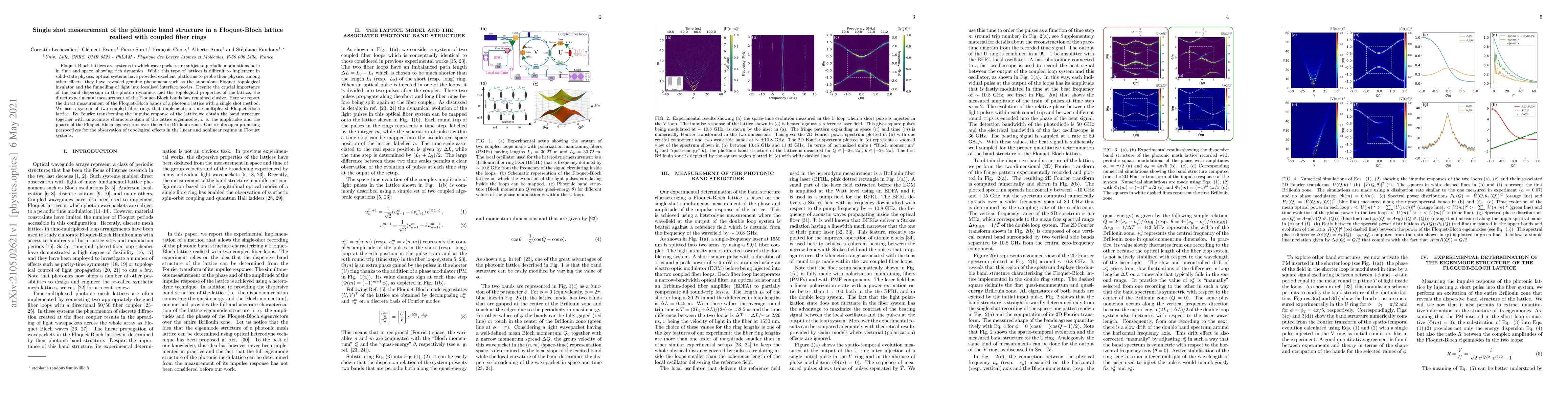 This paper reports the first direct single-shot measurement of the photonic band structure in a Floquet-Bloch lattice using a system of coupled fiber rings. The study reveals the band dispersion and eigenmodes, paving the way for observing topological phenomena in optical Floquet systems.