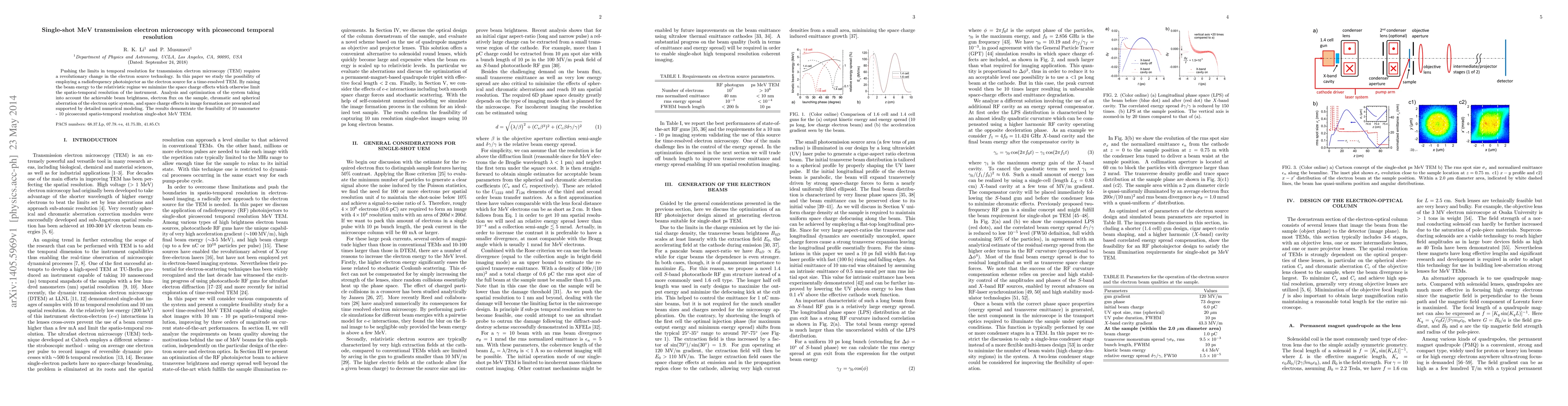 Pushing the limits in temporal resolution for transmission electron microscopy (TEM) requires a revolutionary change in the electron source technology. In this paper we study the possibility of employing a radiofrequency photoinjector as the electron source for a time-resolved TEM. By raising the beam energy to the relativistic regime we minimize the space charge effects which otherwise limit the spatio-temporal resolution of the instrument. Analysis and optimization of the system taking into account the achievable beam brightness, electron flux on the sample, chromatic and spherical aberration of the electron optic system, and space charge effects in image formation are presented and supported by detailed numerical modeling. The results demonstrate the feasibility of 10 nanometer - 10 picosecond spatio-temporal resolution single-shot MeV TEM.