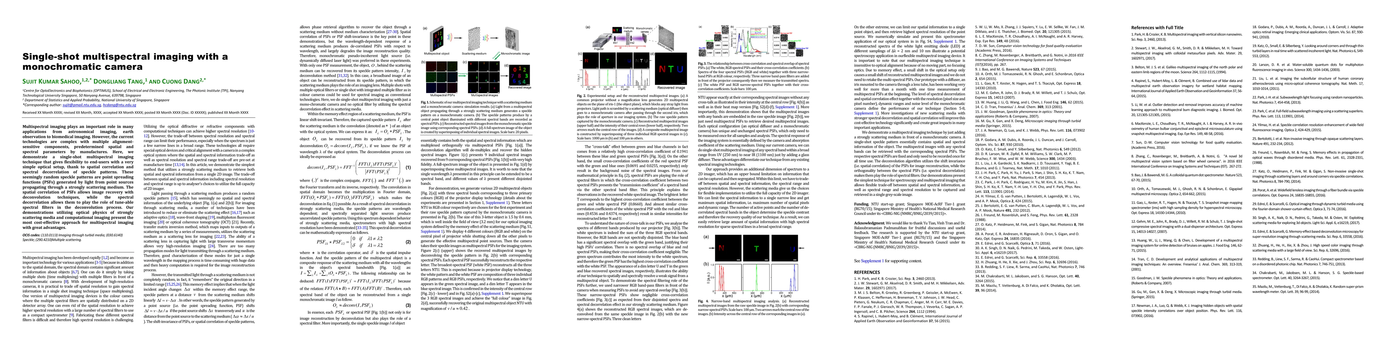 This paper presents a cost-effective single-shot multispectral imaging technique using a monochromatic camera and strongly scattering media, enabling flexible and simple multispectral imaging without complex alignments. The method leverages spatial correlation and spectral decorrelation of speckle patterns for image recovery and tunable spectral filtering.