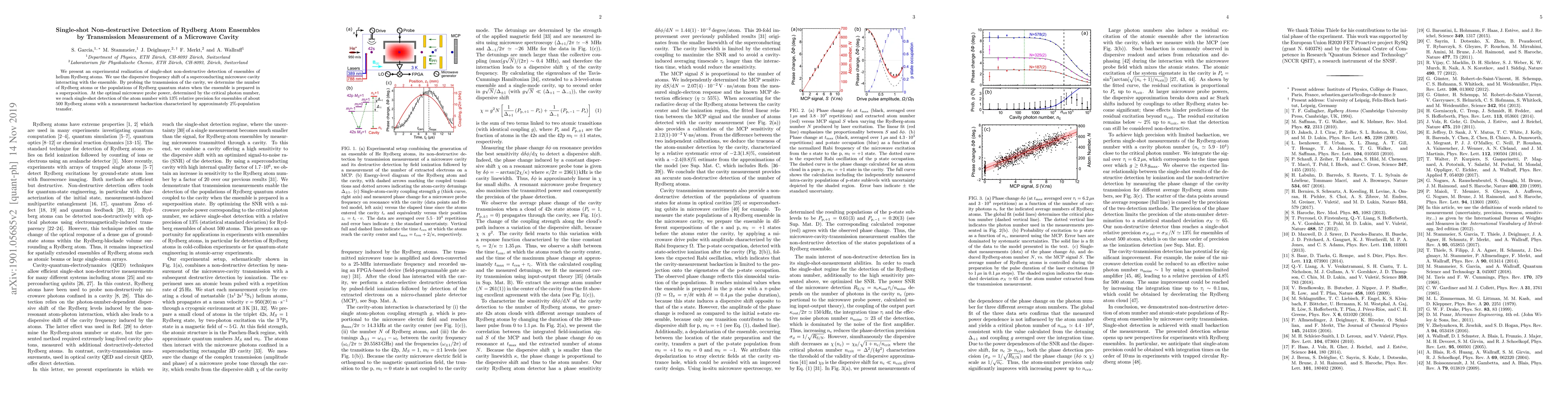This paper presents a method for single-shot, non-destructive detection of Rydberg atom ensembles using the dispersive frequency shift of a superconducting microwave cavity. The technique measures the phase change in cavity transmission to determine atom number and quantum state populations, achieving 13% precision for around 500 atoms with minimal measurement backaction.
