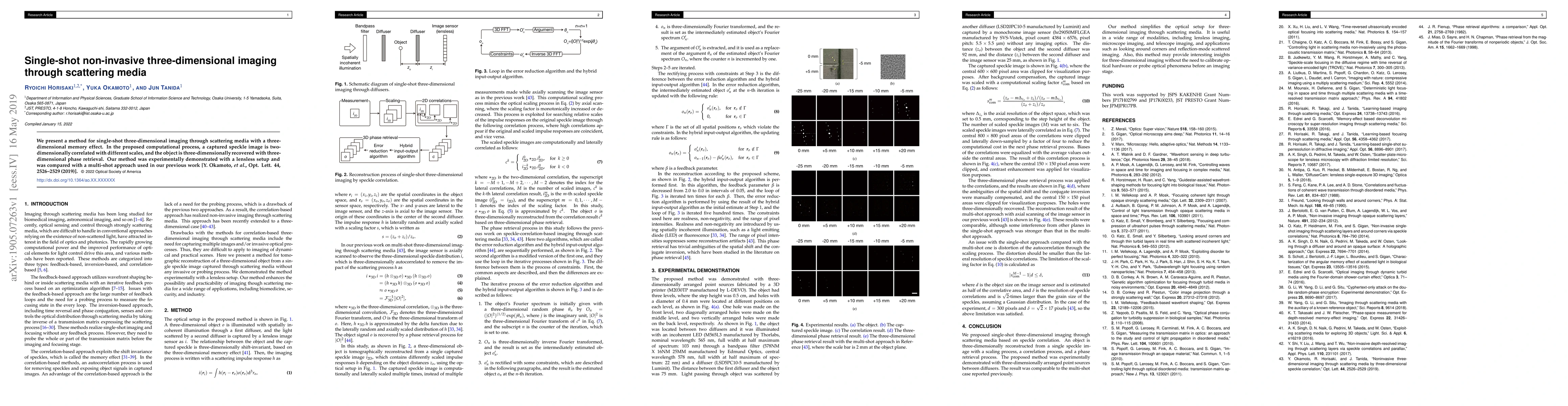 This paper introduces a single-shot method for three-dimensional imaging through scattering media, utilizing a computational process that correlates captured speckle images across different scales for three-dimensional phase retrieval. Experimental results show its effectiveness compared to a multi-shot approach from previous work.