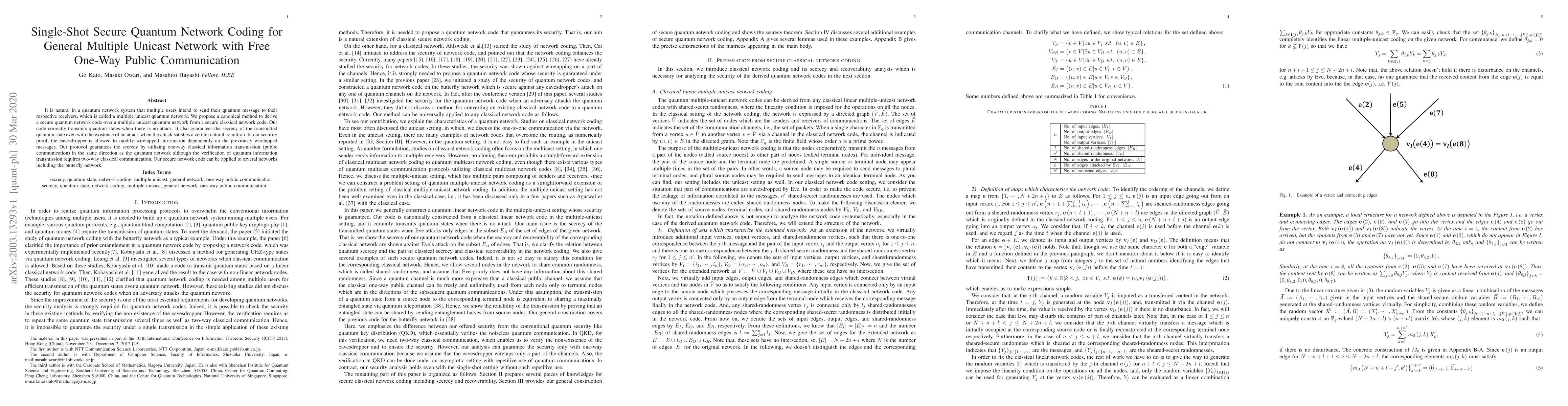 This paper proposes a secure quantum network coding method for multiple unicast quantum networks, ensuring the transmission of quantum states without attack and maintaining secrecy even under certain attack conditions. The protocol leverages one-way public communication for security, while requiring two-way classical communication for verification.