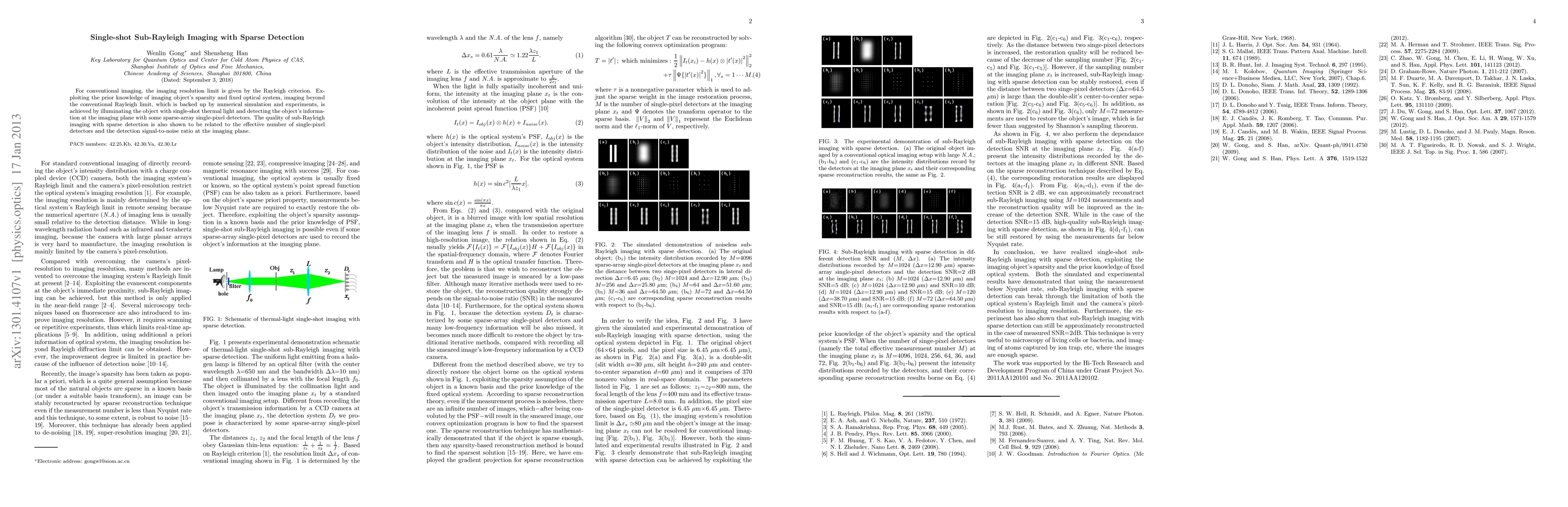 The paper introduces a novel single-shot sub-Rayleigh imaging technique using sparse detection, which leverages object sparsity and optical system prior knowledge to surpass the Rayleigh limit with sparse-array single-pixel detectors.