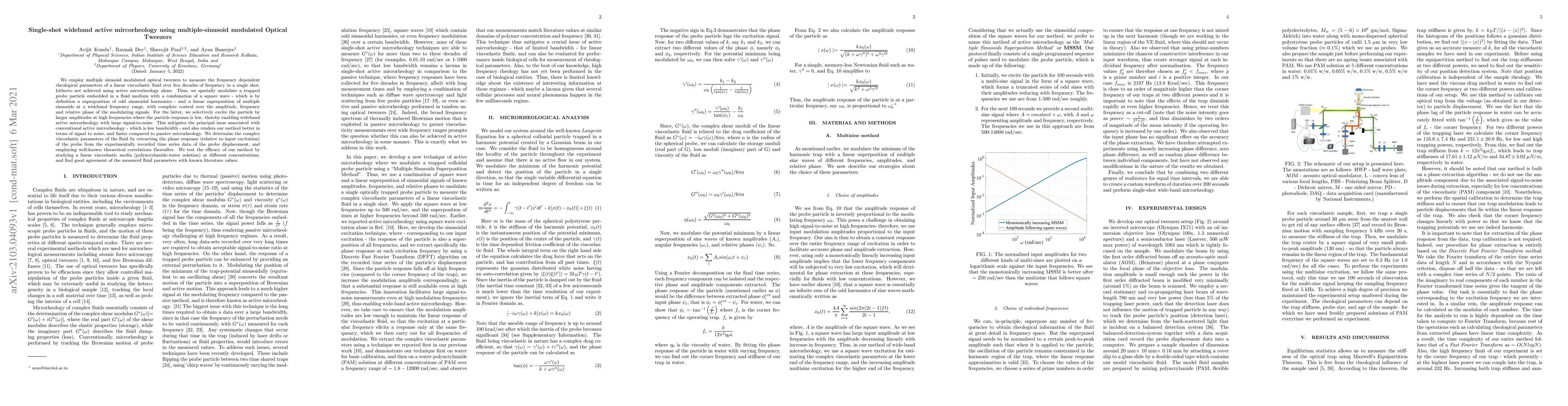This paper presents a novel method using multiple-sinusoid modulated optical tweezers to measure frequency-dependent rheological parameters of viscoelastic fluids over five decades of frequency in a single shot. The method enhances signal-to-noise ratio and bandwidth, providing accurate viscoelastic parameters of tested polyacrylamide-water solutions.