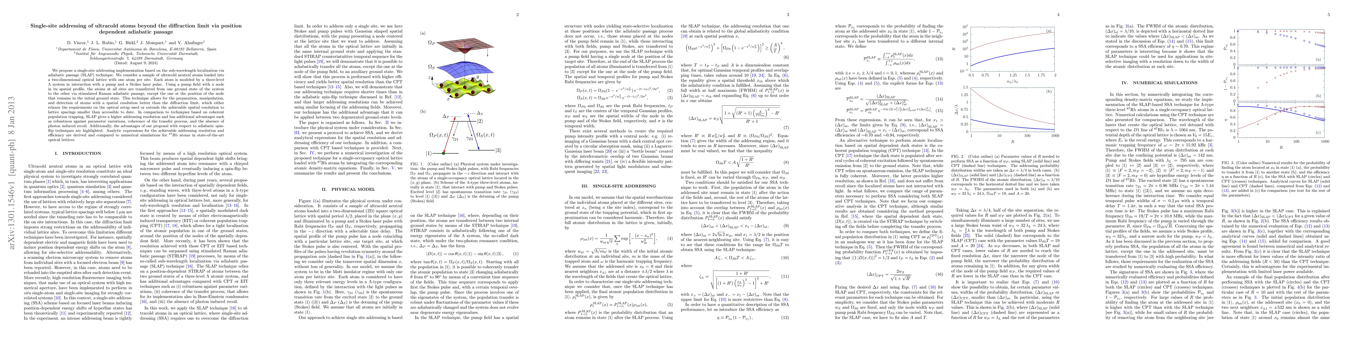 This paper proposes a novel technique called sub-wavelength localization via adiabatic passage (SLAP) for single-site addressing of ultracold atoms, surpassing the diffraction limit. SLAP uses stimulated Raman adiabatic passage to manipulate atoms in a two-dimensional optical lattice, achieving higher resolution and robustness compared to coherent population trapping methods.