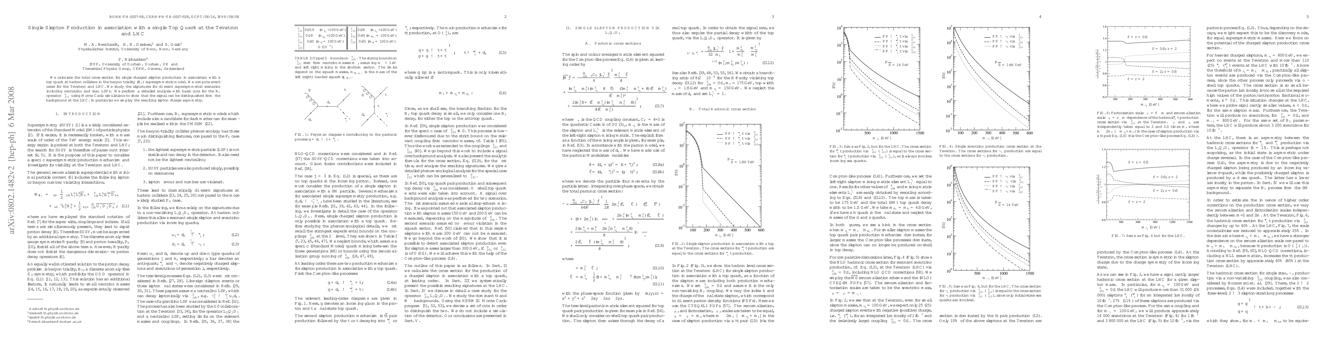 We calculate the total cross section for single charged slepton production in association with a top quark at hadron colliders in the baryon triality (B$_3$) supersymmetric model. We compute event rates for the Tevatron and LHC. We study the signatures for different supersymmetric scenarios including neutralino and stau LSPs. We perform a detailed analysis with basic cuts for the B$_3$ operator $\lam^\prime_{231}$ using Monte Carlo simulations to show that the signal can be distinguished from the background at the LHC. In particular we employ the resulting lepton charge asymmetry.