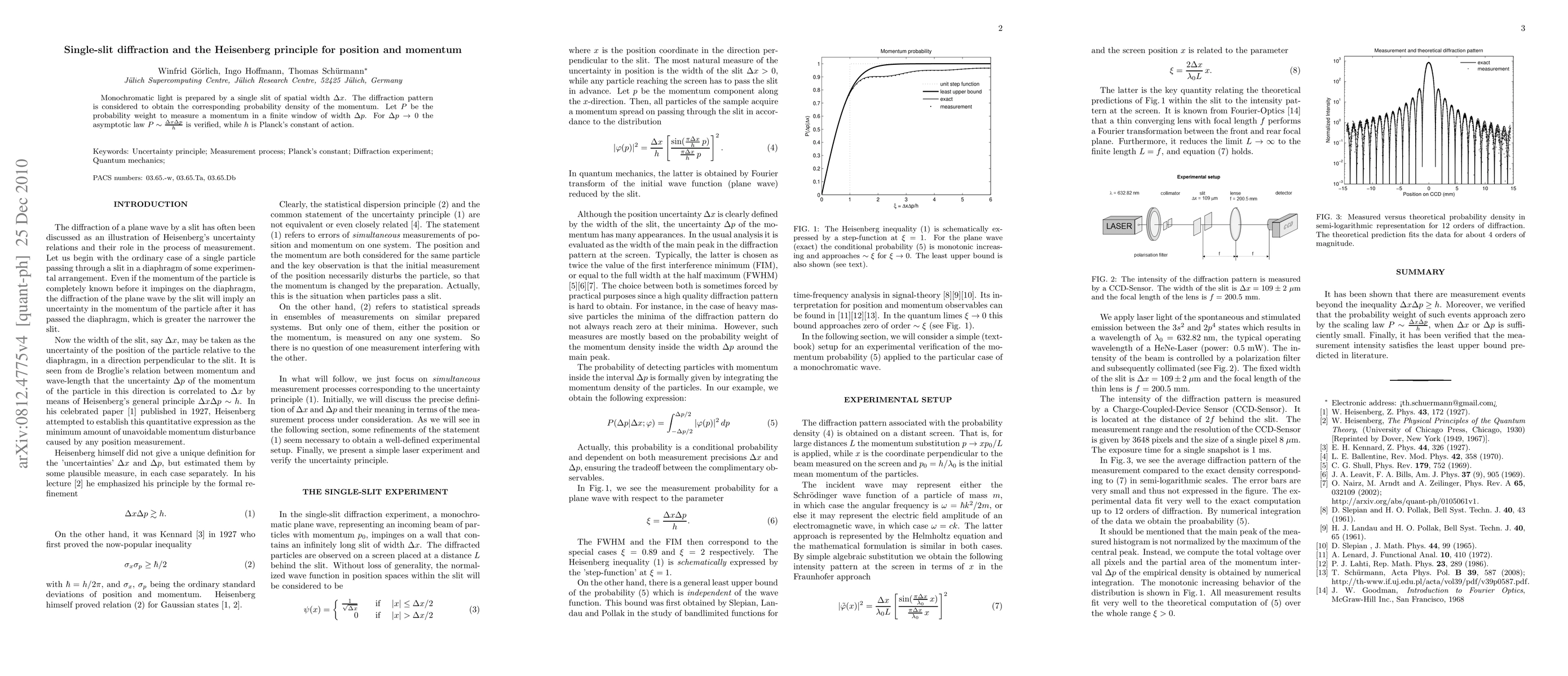 Monochromatic light is prepared by a single slit of spatial width {\Delta}x. The diffraction pattern is considered to obtain the corresponding probability density of the momentum. Let P be the probability weight to measure a momentum in a finite window of width {\Delta}p. For small {\Delta}p the asymptotic law P ~ {\Delta}x{\Delta}p/h is verified, while h is Planck's constant of action.