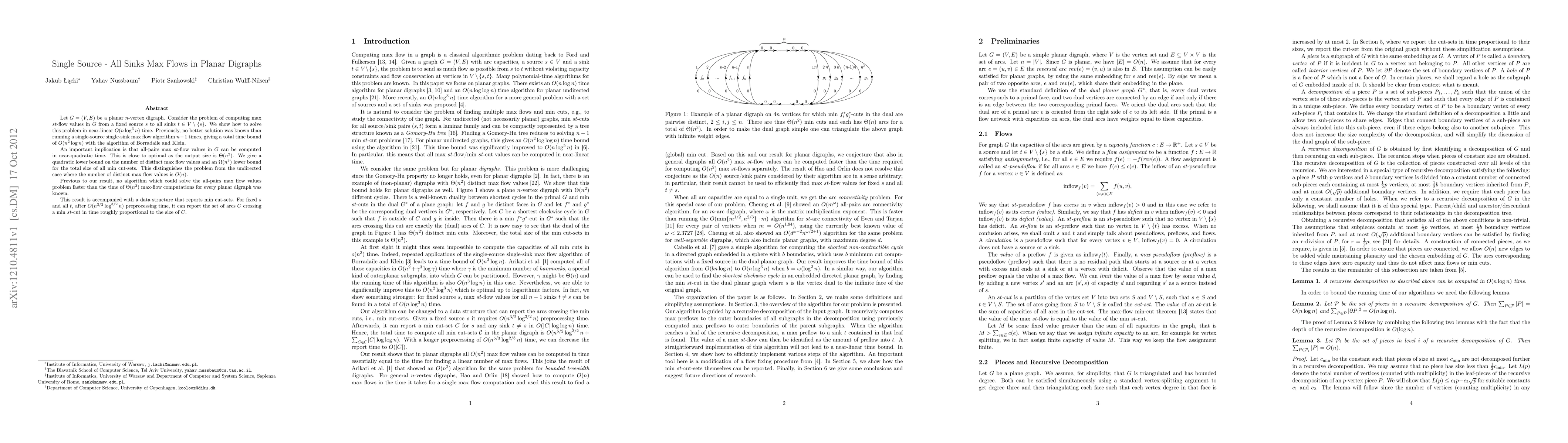 This research introduces an efficient algorithm to compute maximum flow values from a fixed source to all other nodes in a planar directed graph, running in near-linear time. It also provides tools to quickly identify minimum cut-sets, significantly improving understanding of flow structures in planar networks.