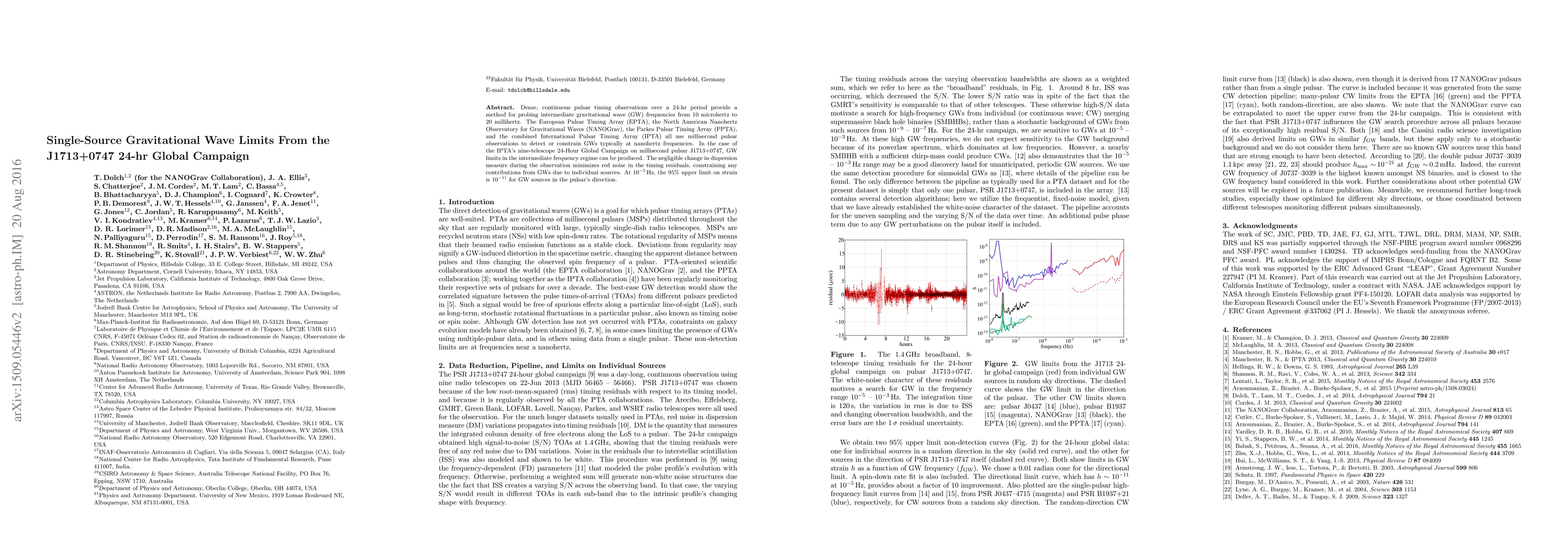Dense, continuous pulsar timing observations over a 24-hr period provide a method for probing intermediate gravitational wave (GW) frequencies from 10 microhertz to 20 millihertz. The European Pulsar Timing Array (EPTA), the North American Nanohertz Observatory for Gravitational Waves (NANOGrav), the Parkes Pulsar Timing Array (PPTA), and the combined International Pulsar Timing Array (IPTA) all use millisecond pulsar observations to detect or constrain GWs typically at nanohertz frequencies. In the case of the IPTA's nine-telescope 24-Hour Global Campaign on millisecond pulsar J1713+0747, GW limits in the intermediate frequency regime can be produced. The negligible change in dispersion measure during the observation minimizes red noise in the timing residuals, constraining any contributions from GWs due to individual sources. At 10$^{-5}$Hz, the 95% upper limit on strain is 10$^{-11}$ for GW sources in the pulsar's direction.