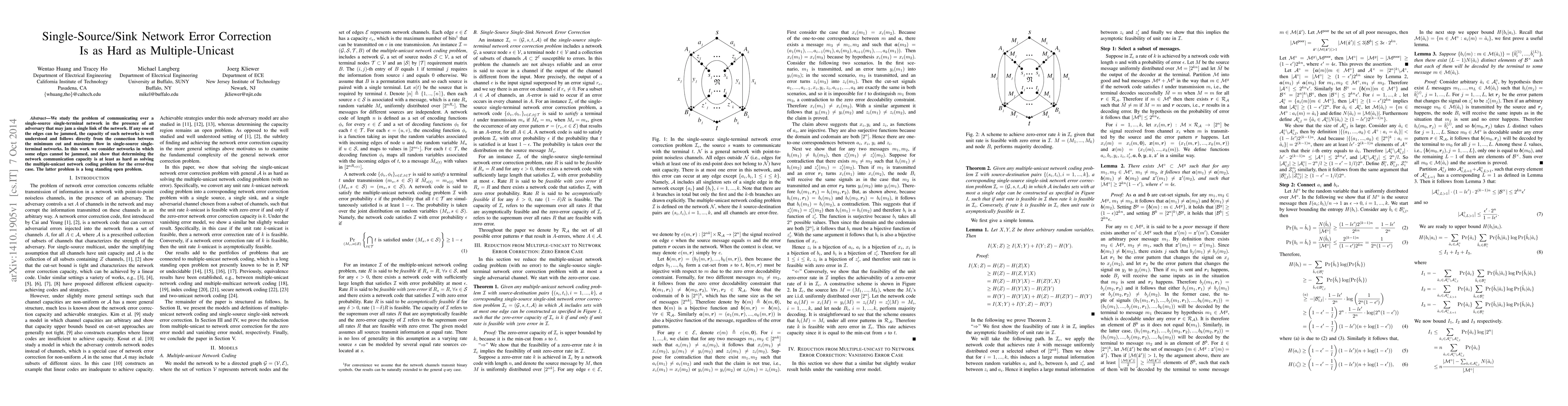 We study the problem of communicating over a single-source single-terminal network in the presence of an adversary that may jam a single link of the network. If any one of the edges can be jammed, the capacity of such networks is well understood and follows directly from the connection between the minimum cut and maximum flow in single-source single- terminal networks. In this work we consider networks in which some edges cannot be jammed, and show that determining the network communication capacity is at least as hard as solving the multiple-unicast network coding problem for the error-free case. The latter problem is a long standing open problem.