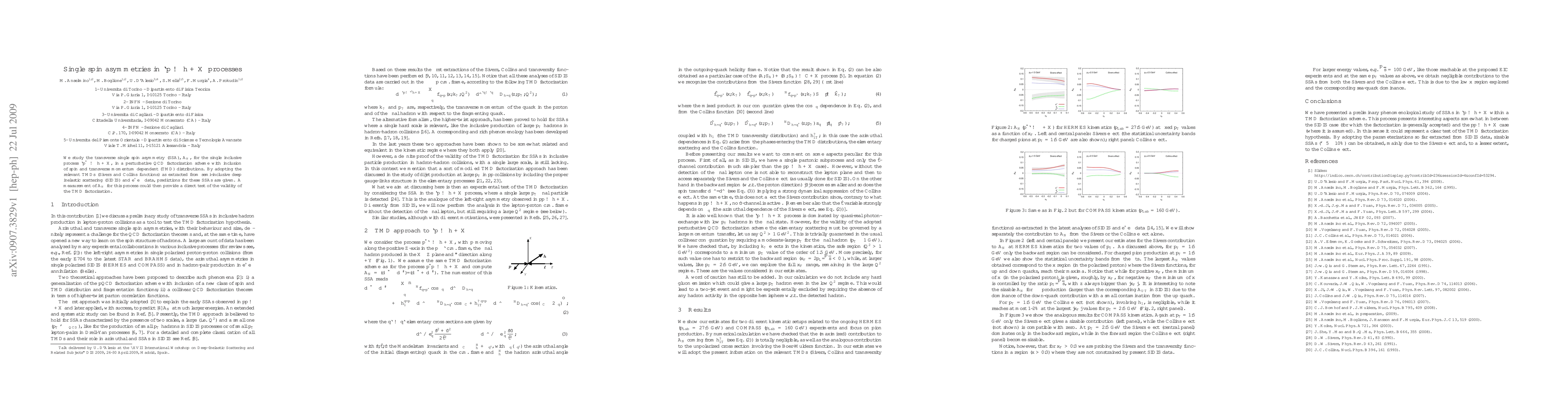 This paper investigates transverse single spin asymmetries (A_N) in the process l p --> h + X using a perturbative QCD framework that incorporates spin and transverse momentum dependent distributions. Predictions are made using TMD functions derived from SIDIS and e+e- data, aiming to validate the TMD factorization scheme through experimental measurements of A_N.