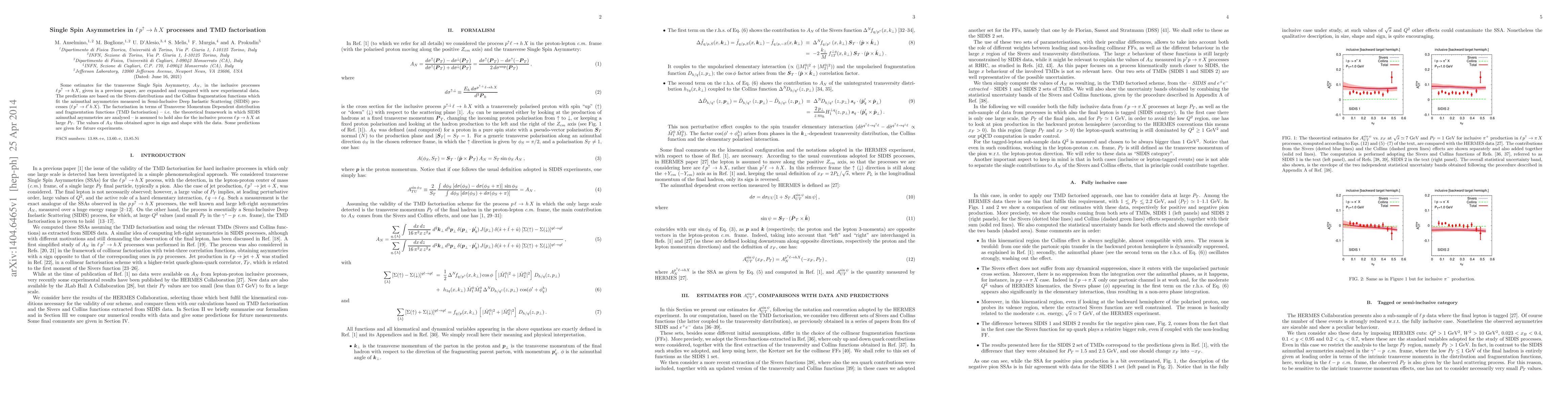 This paper expands on previous estimates for transverse Single Spin Asymmetry in inclusive proton-proton processes, using Sivers distributions and Collins fragmentation functions. Predictions based on TMD factorisation align with new experimental data, suggesting the theoretical framework can be applied to both inclusive and SIDIS processes.