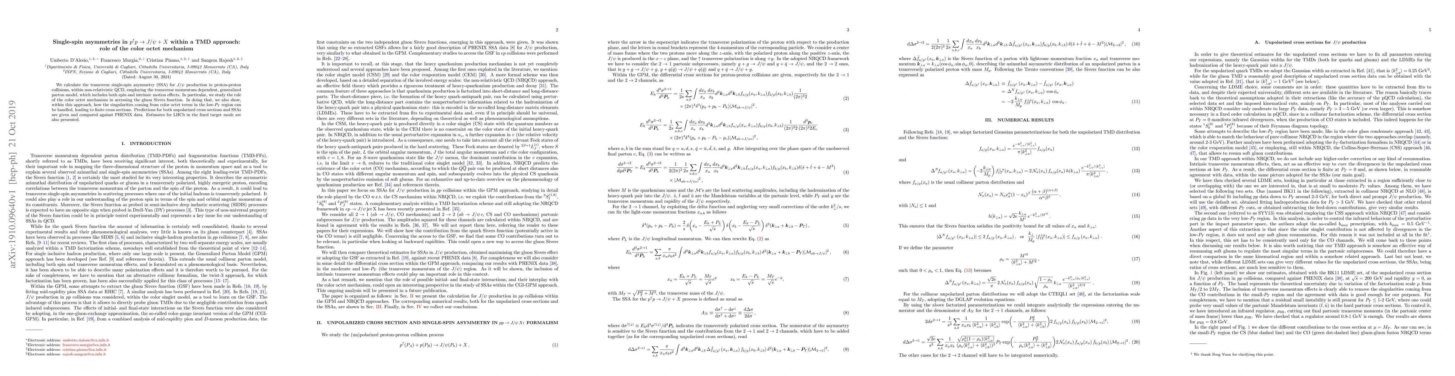 We calculate the transverse single-spin asymmetry (SSA) for $J/\psi$ production in proton-proton collisions, within non-relativistic QCD, employing the transverse momentum dependent, generalized parton model, which includes both spin and intrinsic motion effects. In particular, we study the role of the color octet mechanism in accessing the gluon Sivers function. In doing that, we also show, within this approach, how the singularities coming from color octet terms in the low-$P_T$ region can be handled, leading to finite cross sections. Predictions for both unpolarized cross sections and SSAs are given and compared against PHENIX data. Estimates for LHCb in the fixed target mode are also presented.