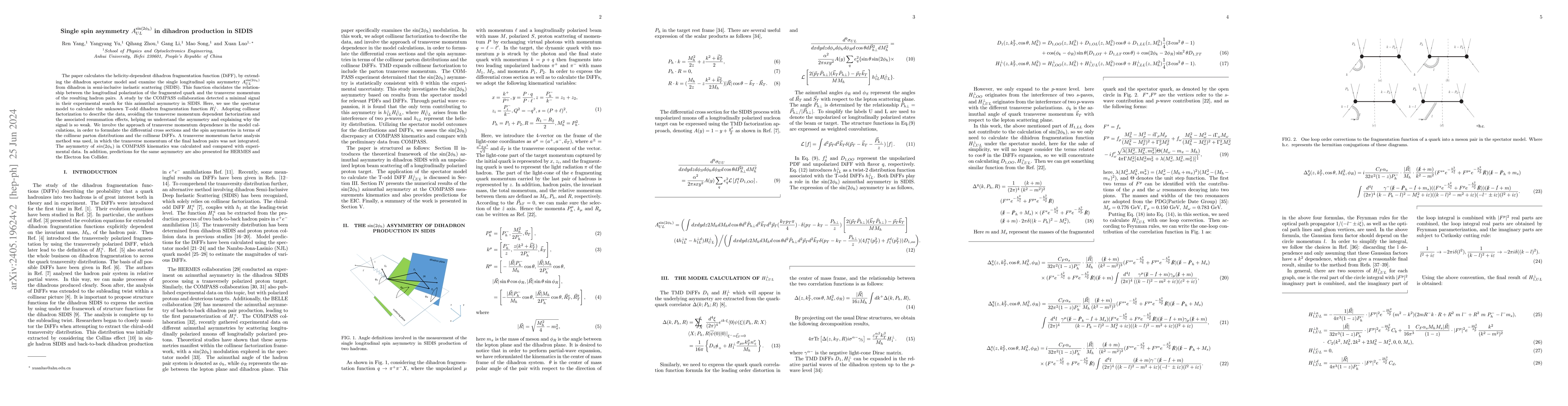 The paper calculates the helicity-dependent dihadron fragmentation function (DiFF), by extending the dihadron spectator model and examine the single longitudinal spin asymmetry $A^{\sin(2\phi_h)}_{UL}$ from dihadron in semi-inclusive inelastic scattering (SIDIS). This function elucidates the relationship between the longitudinal polarization of the fragmented quark and the transverse momentum of the resulting hadron pairs. A study by the COMPASS collaboration detected a minimal signal in their experimental search for this azimuthal asymmetry in SIDIS. Here, we use the spectator model to calculate the unknown T-odd dihadron fragmentation function $H_1^\perp$. Adopting collinear factorization to describe the data, avoiding the transverse momentum dependent factorization and the associated resummation effects, helping us understand the asymmetry and explaining why the signal is so weak. We involve the approach of transverse momentum dependence in the model calculations, in order to formulate the differential cross sections and the spin asymmetries in terms of the collinear parton distributions and the collinear DiFFs. A transverse momentum factor analysis method was used, in which the transverse momentum of the final hadron pairs was not integrated. The asymmetry of $sin(2\phi_h)$ in COMPASS kinematics was calculated and compared with experimental data. In addition, predictions for the same asymmetry are also presented for HERMES and the Electron Ion Collider.