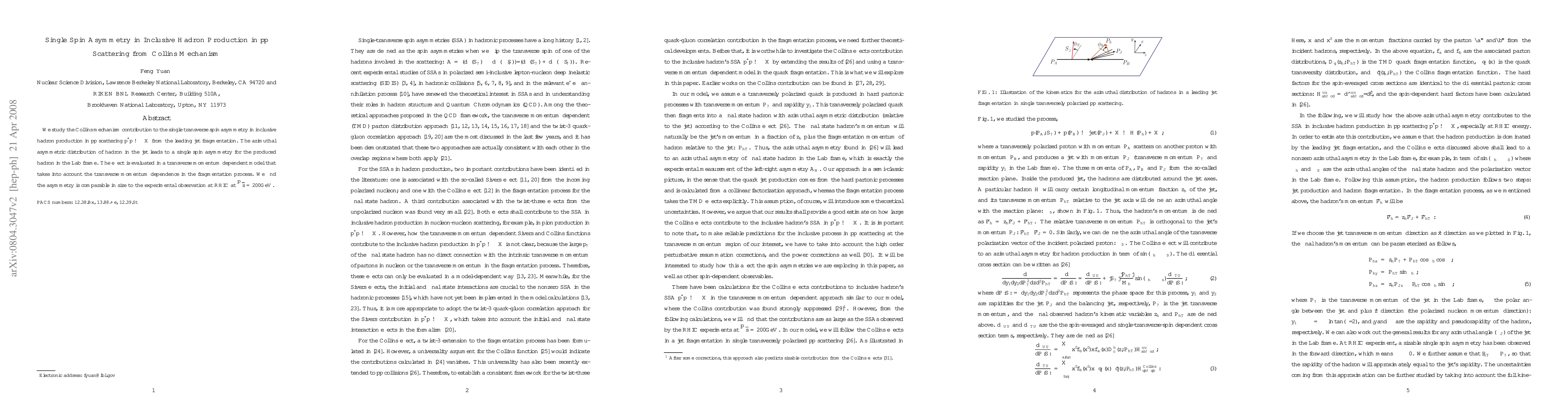 This study investigates the Collins mechanism's contribution to single transverse spin asymmetry in inclusive hadron production in proton-proton scattering, finding it comparable to experimental observations at RHIC. The effect is analyzed using a transverse momentum dependent model that considers fragmentation dynamics.