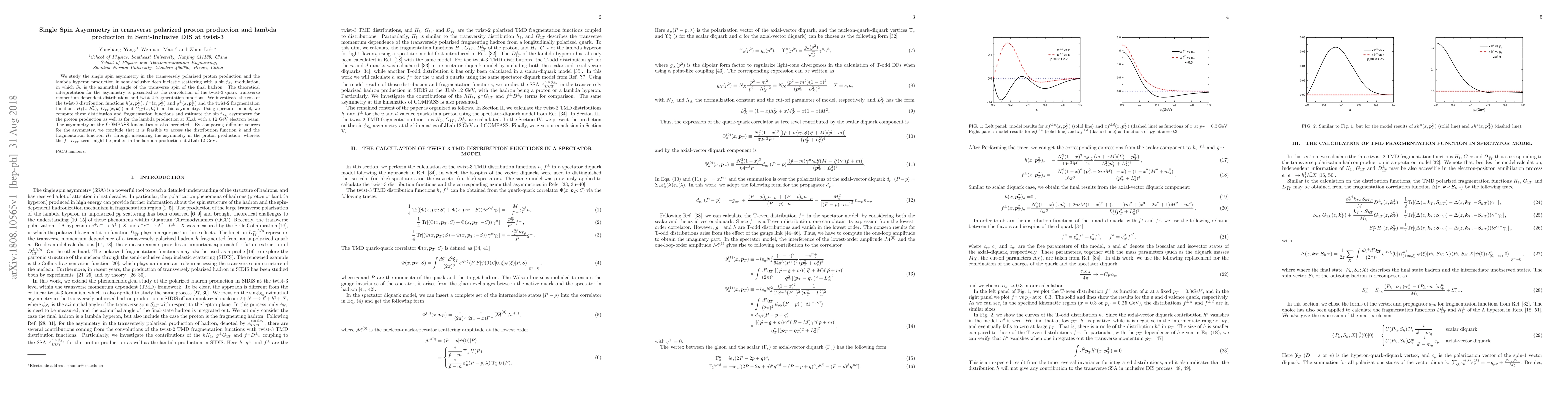 This paper investigates single spin asymmetries in transversely polarized proton and lambda hyperon production during semi-inclusive deep inelastic scattering, attributing the asymmetry to twist-3 quark distributions and twist-2 fragmentation functions. The study predicts measurable asymmetries at JLab and COMPASS, suggesting feasible access to specific distribution and fragmentation functions via these asymmetries.