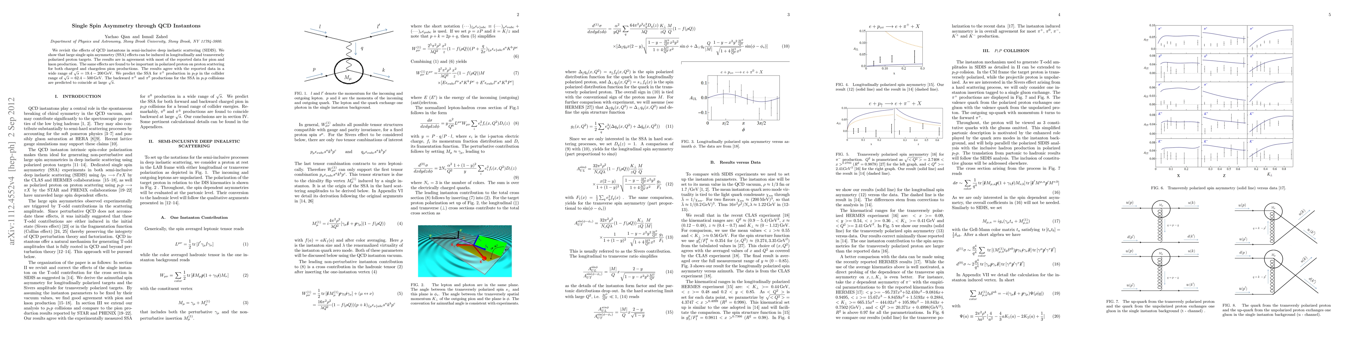 We revisit the effects of QCD instantons in semi-inclusive deep inelastic scattering (SIDIS). We show that large single spin asymmetry (SSA) effects can be induced in longitudinally and transversely polarized proton targets. The results are in agreement with most of the reported data for pion and kaon production. The same effects are found to be important in polarized proton on proton scattering for both charged and chargeless pion productions. The results agree with the reported data in a wide range of \sqrt{s} = 19.4-200 GeV. We predict the SSA for \pi^\pm production in p_\uparrow p in the collider range of \sqrt{s} = 62.4-500 GeV. The backward \pi^{\pm} and \pi^0 productions for the SSA in p_\uparrow p collisions are predicted to coincide at large \sqrt{s}.