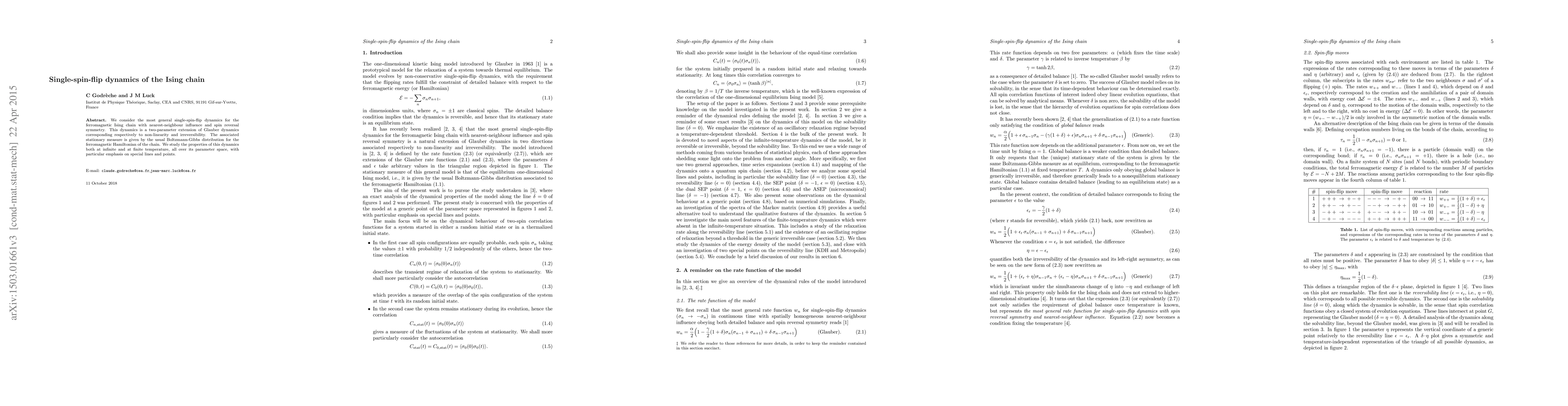 This paper explores the dynamics of single-spin flips in a ferromagnetic Ising chain, extending Glauber dynamics to include non-linearity and irreversibility. The study examines the properties of the system across its parameter space, focusing on its stationary state and behavior at both infinite and finite temperatures.