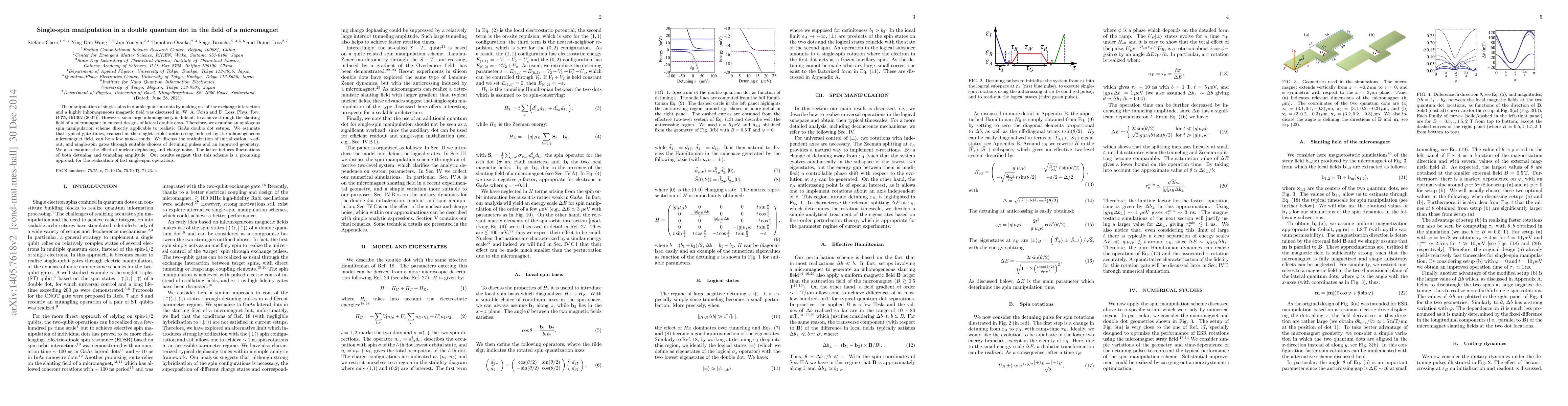 This paper explores a method for single-spin manipulation in double quantum dots using a micromagnet, addressing the challenge of achieving large magnetic field inhomogeneity. The proposed scheme, applicable to realistic GaAs double dot setups, estimates gate times of a few nanoseconds and discusses optimization strategies for initialization, read-out, and single-spin gates, while considering nuclear dephasing and charge noise effects.